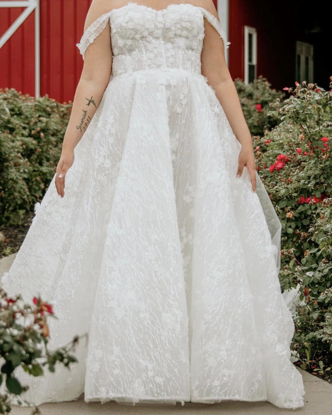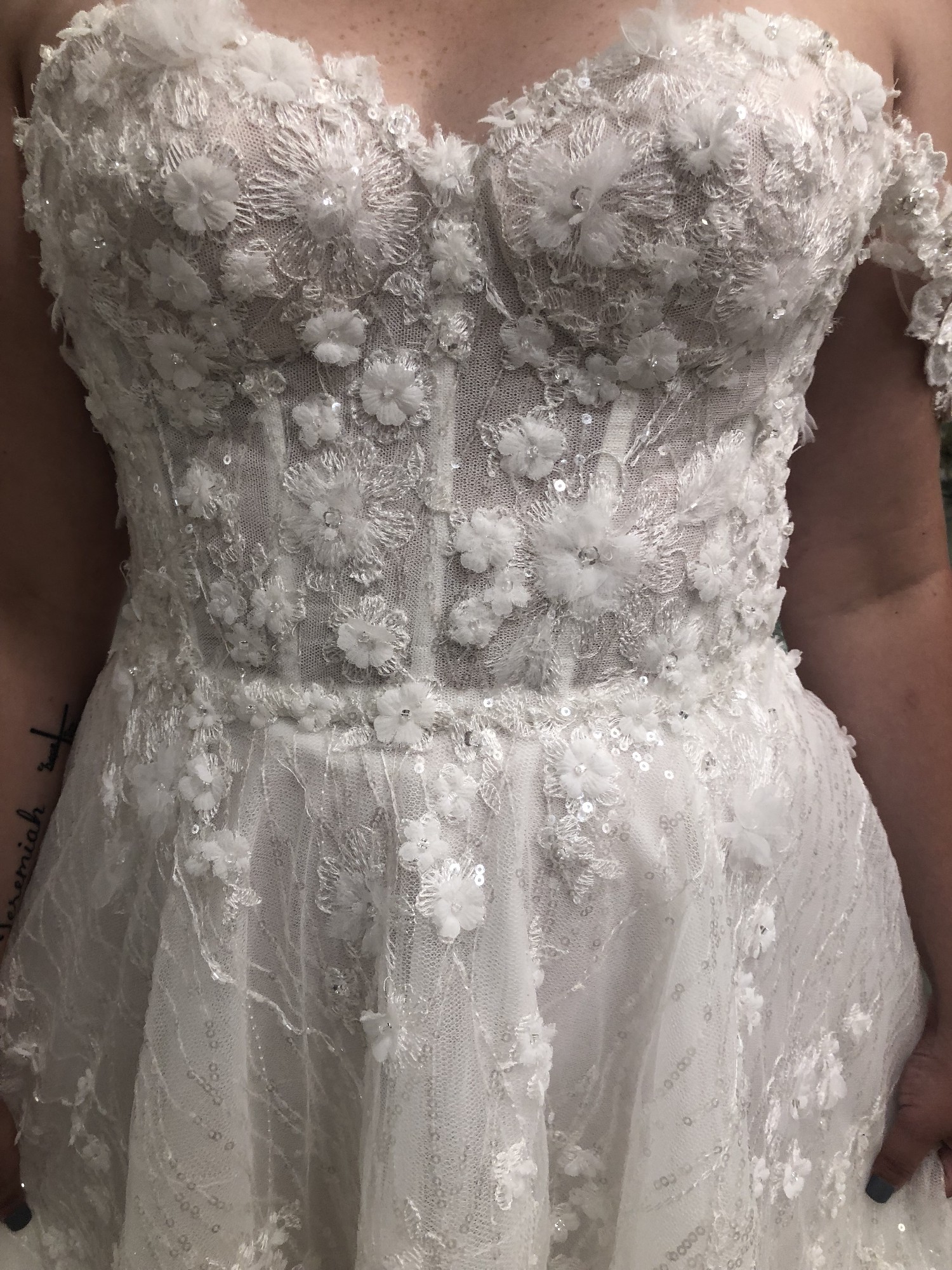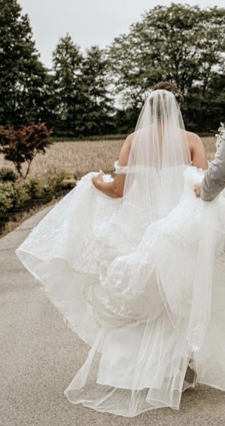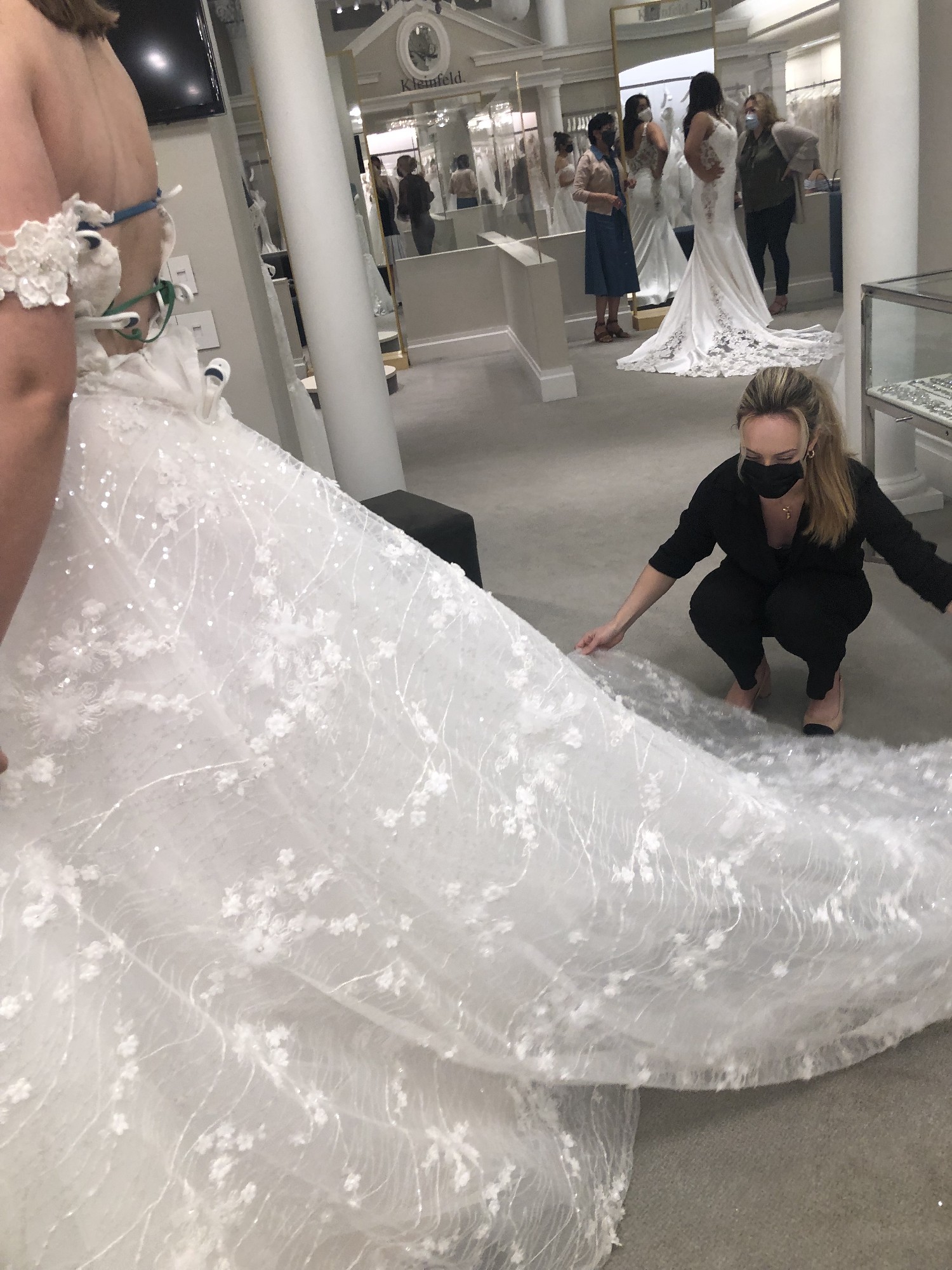My daughter had the unique opportunity to say yes to her dress at Kleinfelds. Check out this amazing dress designed by Rita Vinieris named the Rivini. Now you have the opportunity to create your own special memory in this gorgeous gown! The dress has an amazing sparkle and intricate flower design. The beautiful veil was also purchased at Kleinfelds to match the dress and will be included free with the right offer.
