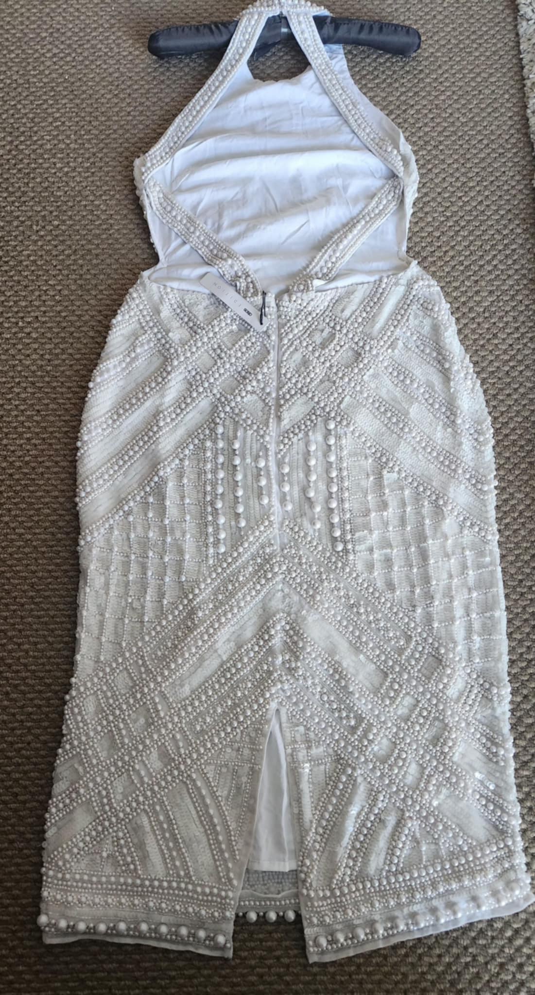 ASOS DESIGN pearl and sequin embellished halter midi dress in ivory Brand new with tags Never been worn Located Perth, Western Australia