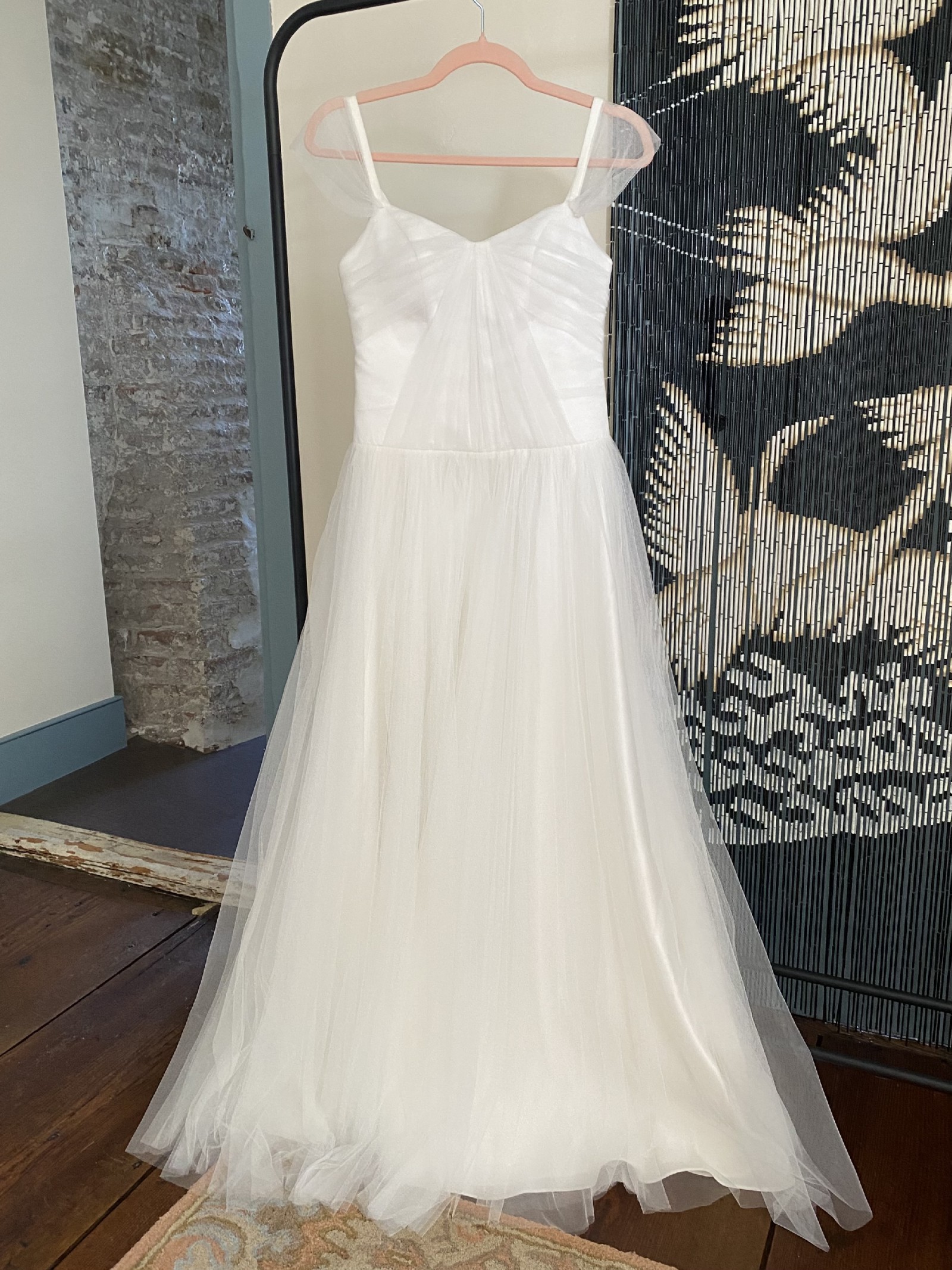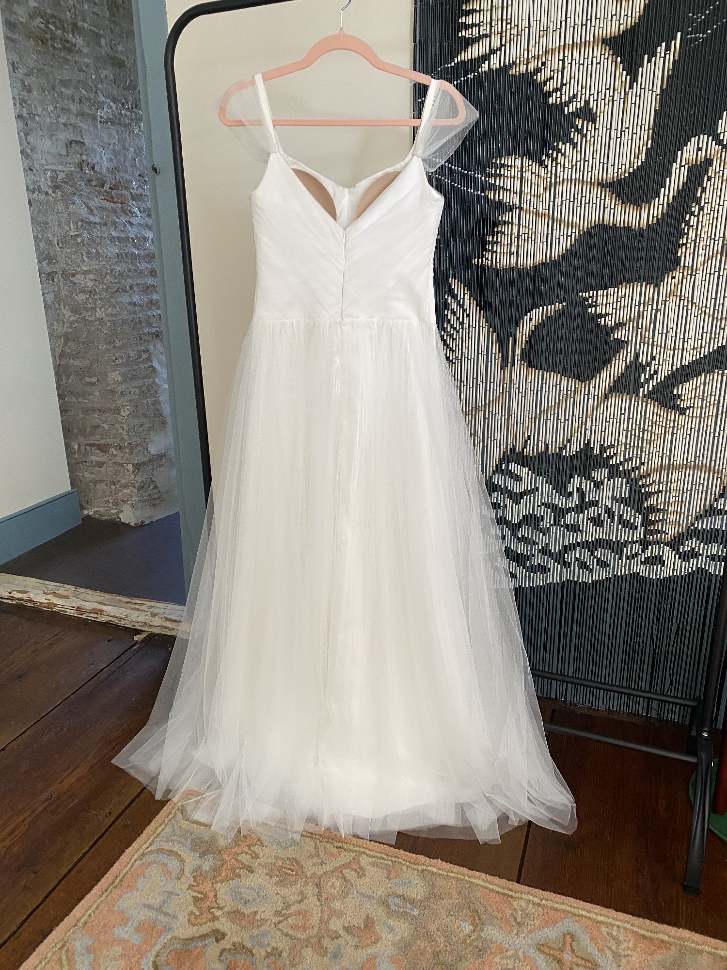 Custom made wedding dress for sale! never worn - although gorgeous i decided to go in a different direction. the straps (capped sleeves) have extra length for alterations. i’m a true 4/small and it fits like a glove, but see measurements (laid flat) below: bust ~14in waist ~14 1/2in total length neckline to floor ~51in waist to floor ~39in