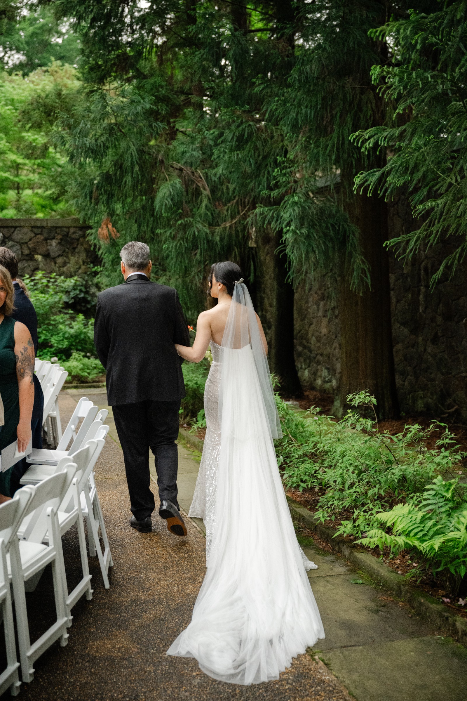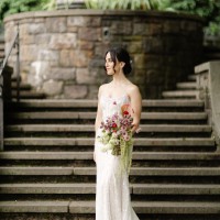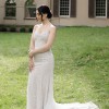 More is more, the Florentina gown is encrusted from head to toe in crystalline beading. Corseted and perfectly structured to your silhouette, this gown is sure to turn heads, and the soft net Watteau is sure to leave them wanting more.