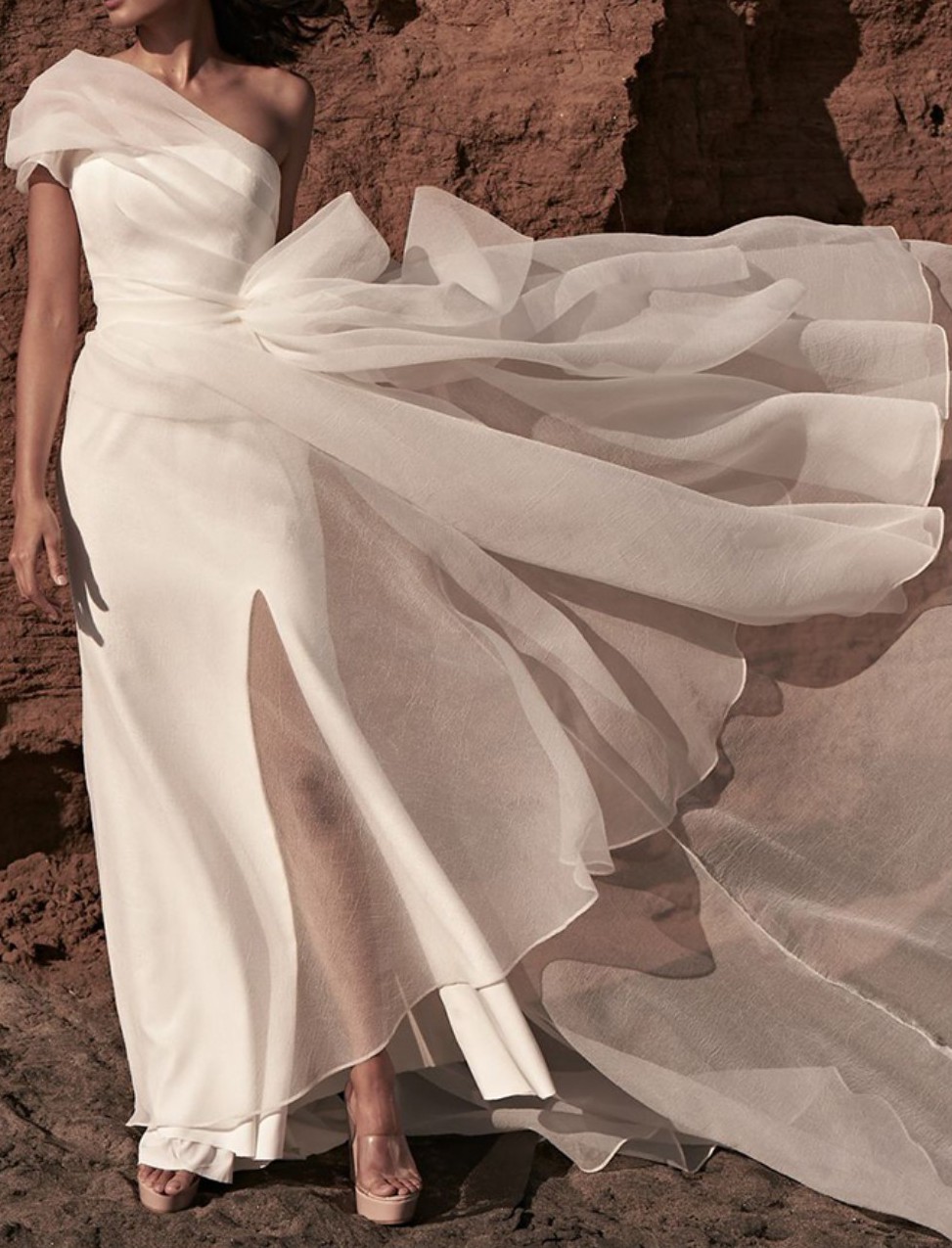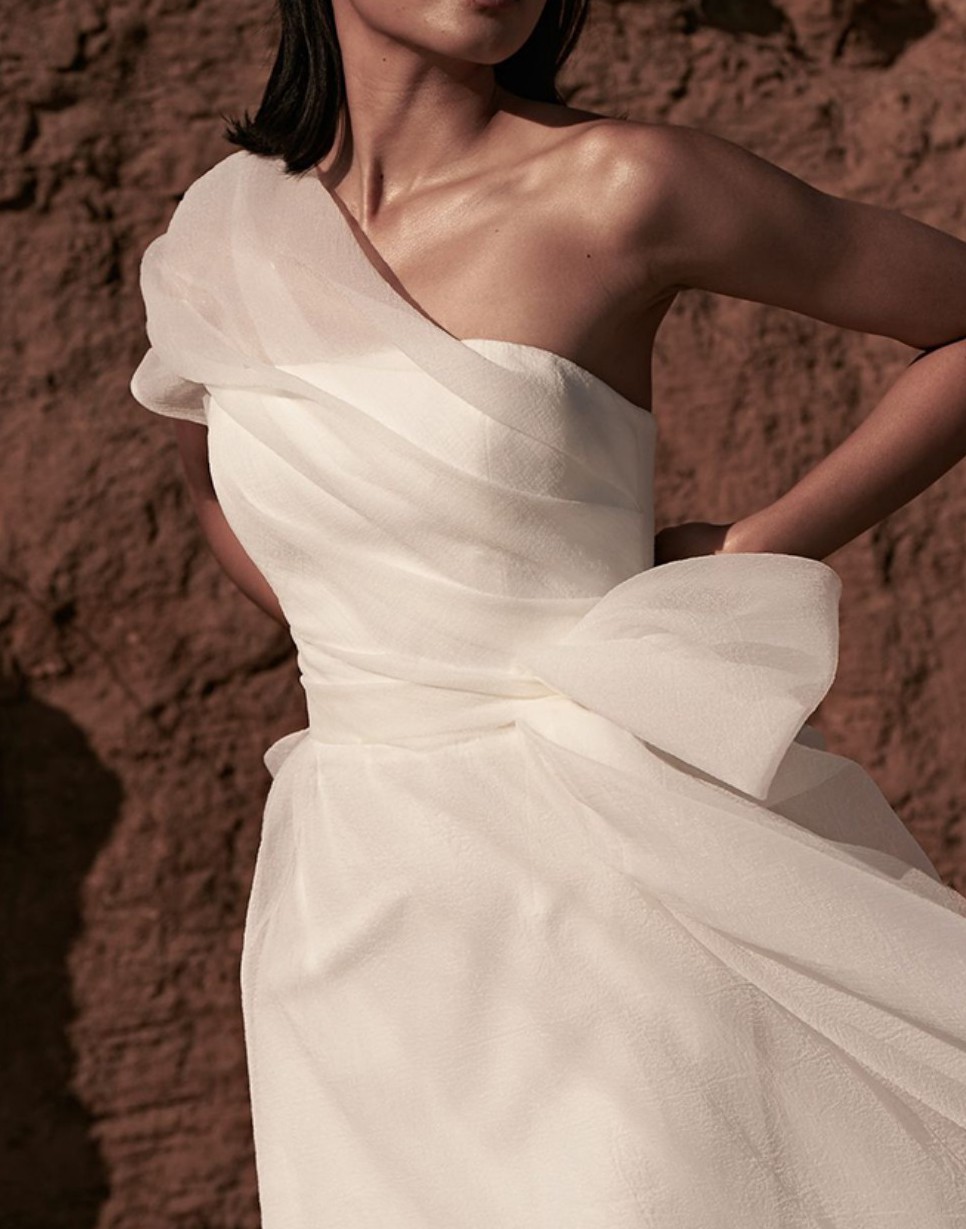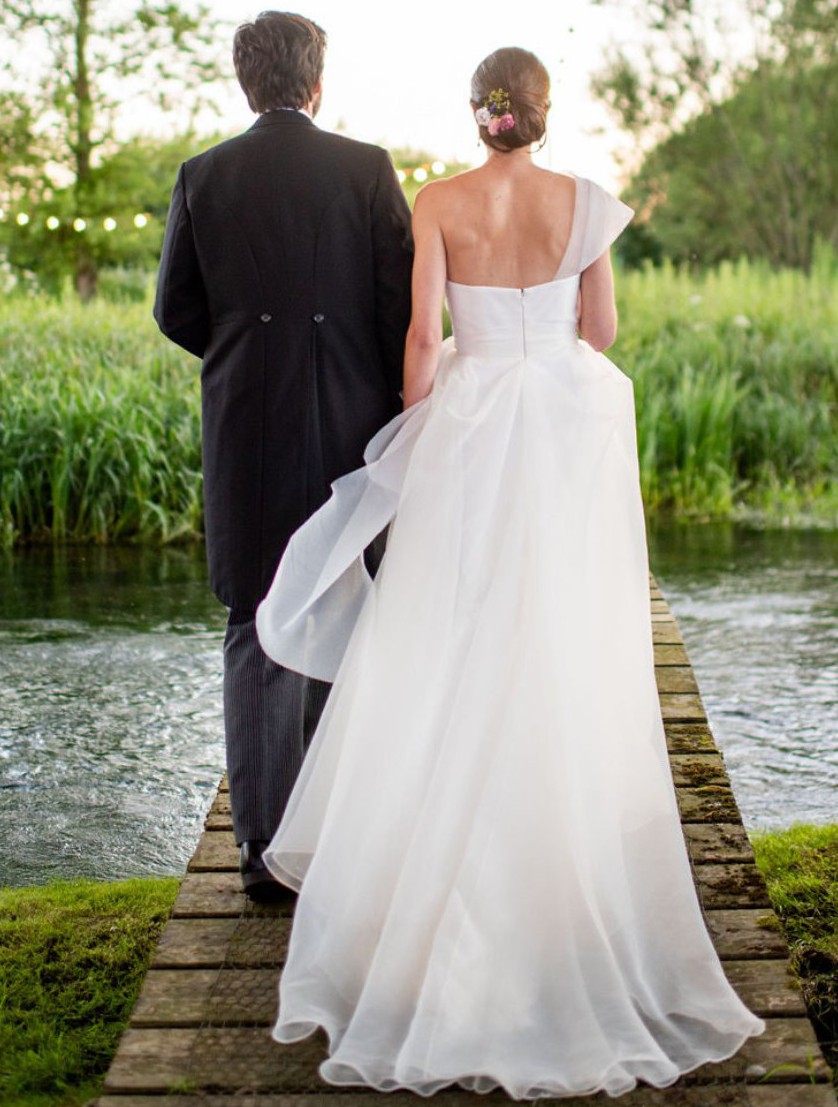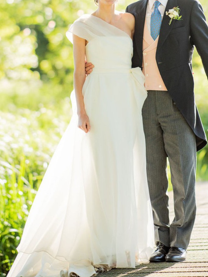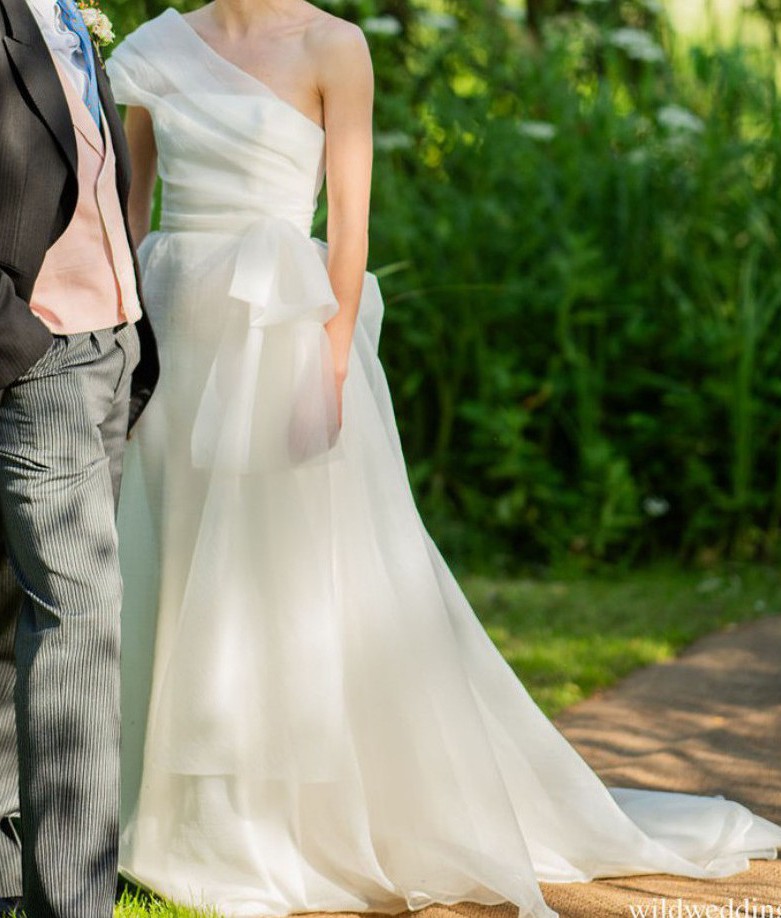 The most beautiful, unique and fun dress which I absolutely adored for my wedding day. I would love for someone else to enjoy it for their special day. The dress has been dry cleaned well and is perfect from the top to near the bottom, but has marks at the bottom of the underlay and some tiny unnoticeable holes at the bottom of the crepe overlay (but no marks). For a slightly shorter person, the bottom could be tailored to be made absolutely perfect!