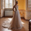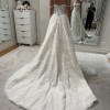 Personal highlight: The rich ivory tone, delicate hand-sewn lace with pearls, and the flattering drop waist corset made this dress truly special.