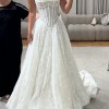The train has been professionally bustled underneath with a color-coded system, making it quick and easy to manage. Altered by an expert in-house tailor in NYC, the final measurements are approximately 34.5" bust, 26" waist, and 39" hips. Since it’s a corset style, it offers some flexibility and can fit slightly above or below those measurements. The A-line cut starts at the waist, so hip measurements are more forgiving. This was originally bought in a EU size 40 but has been altered accordingly.