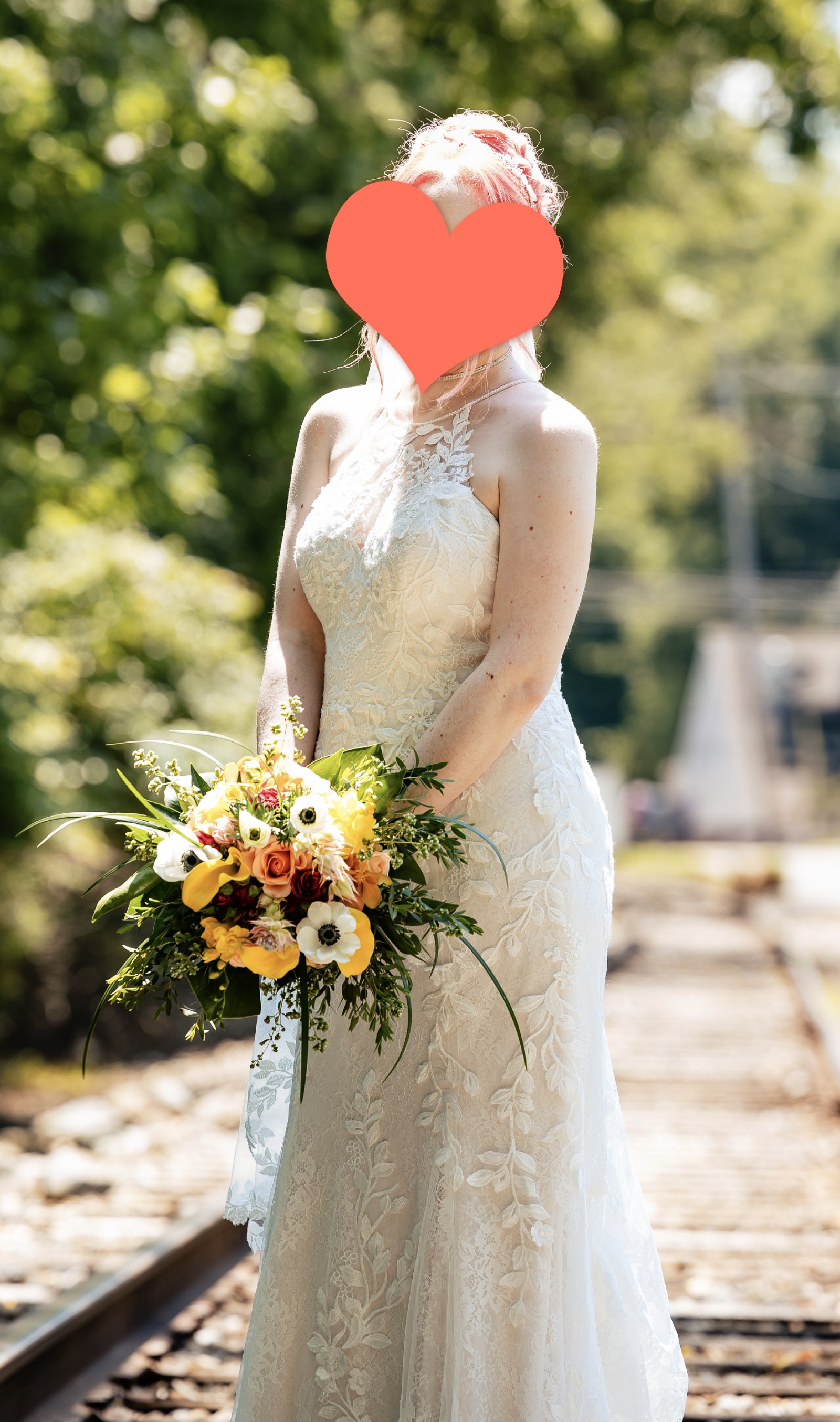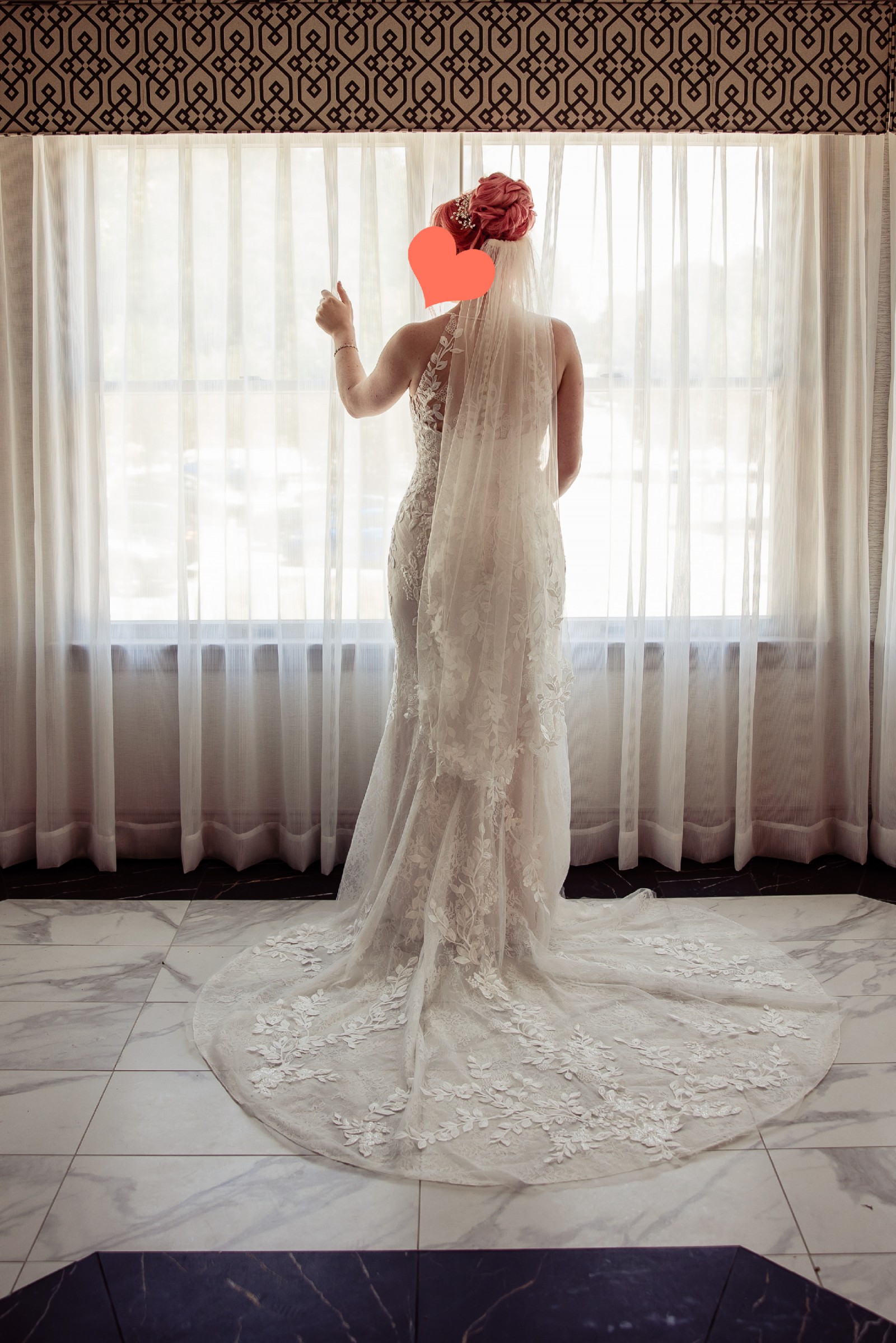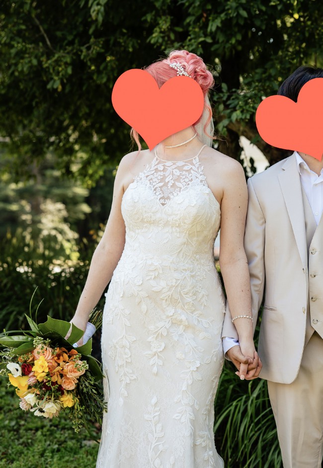 The dress was purchased new at David's Bridal (worth $1700) and comes with unused extra beads/buttons. Also included is the matching Melissa Sweet Leaf-Edge Tulle Fingertip Veil (worth $200). Worn once for my special day then I paid $200 to have it professionally dry cleaned so it's good to go! I'll also include the dress bag I purchased from David's Bridal to carry everything in!