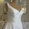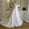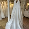 This Janneke wedding dress by Modeca Curves is the epitome of elegance and comfort. Designed specifically for the modern bride, this stunning A-Line silhouette flatters all body types and allows for ease of movement, ensuring you can dance the night away. The soft, luxurious satin fabric cascades gracefully to the floor, shimmering softly in every light, highlighting the exquisite craftsmanship and attention to detail. The dress features a timeless V-neckline that beautifully frames your décolletage, while the V-back adds a hint of allure with its tasteful cut. Delicate straps and basque waistline provide the right balance of support and style, making you feel confident and radiant throughout your special day. Incorporating practicality without sacrificing style, this gown comes with hidden pockets, so you can keep your essentials close at hand.