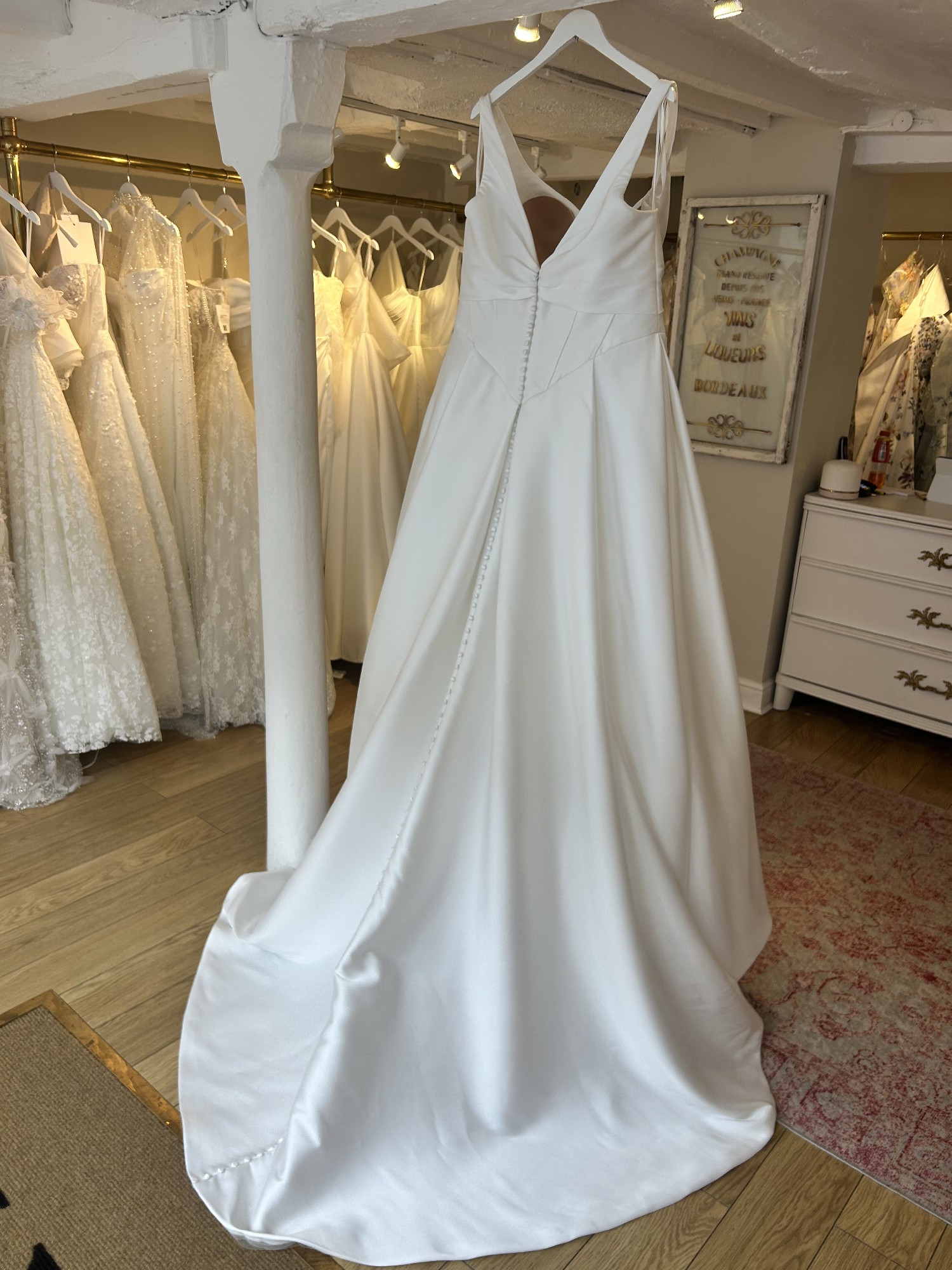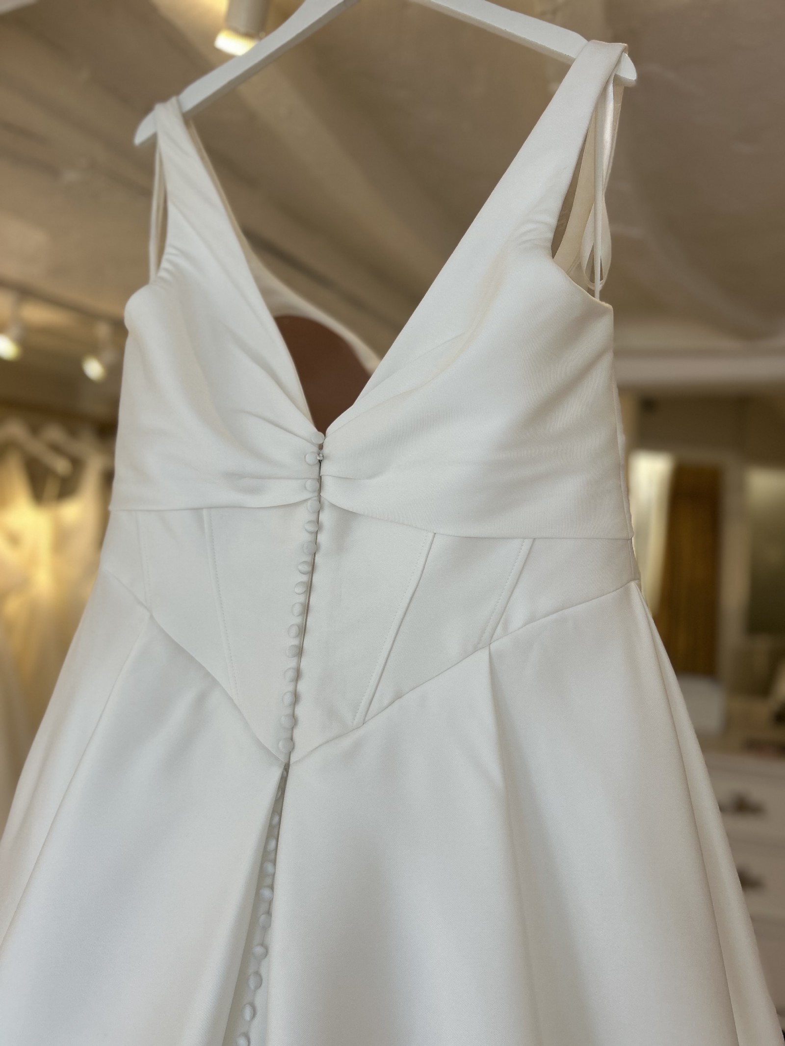 This dress is unaltered and will not be dry-cleaned before shipping. This sample is also for sale in store so this listing may get removed if the dress gets sold.
