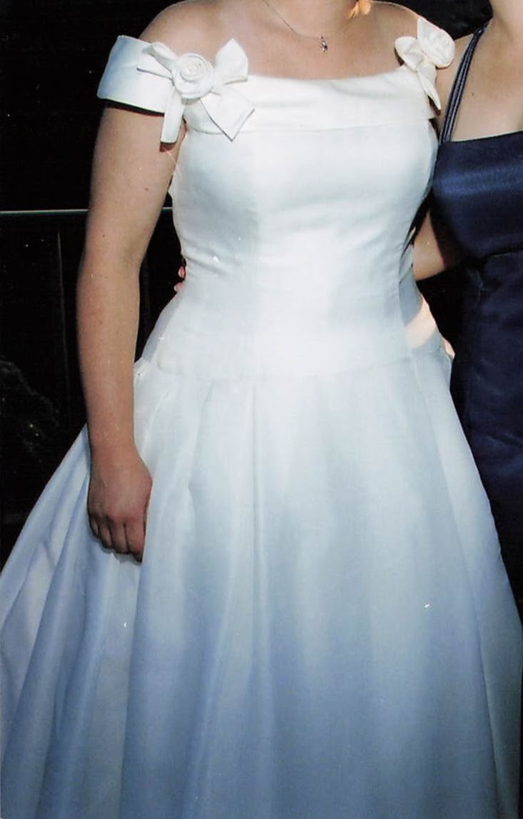 The dress was worn once in 2000, then professionally cleaned and boxed. It was tucked away until now, 25 years later and it's "vintage".