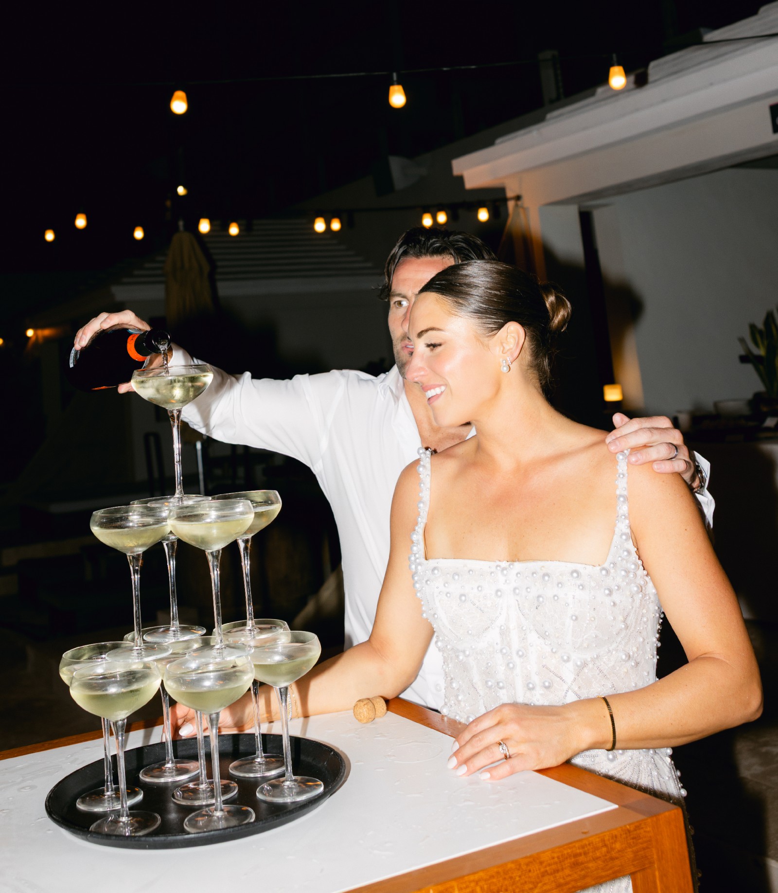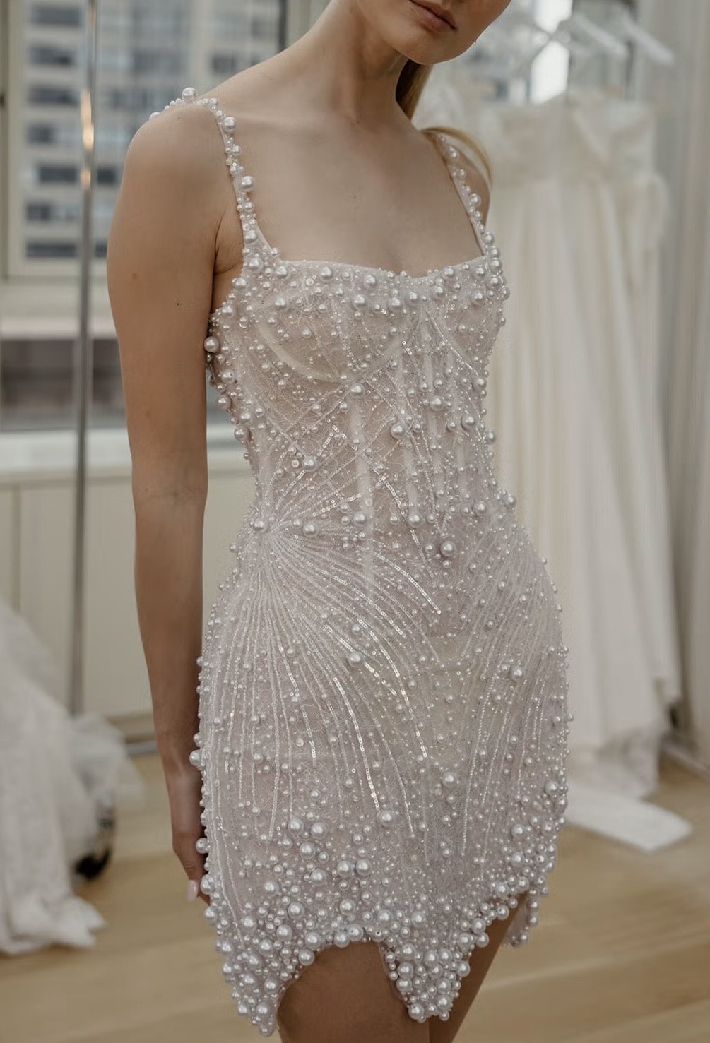 Chloe is a mini by Netta Benshabu is adorned with pearls and scalloped on the skirt. It was perfect for my after party under the stars!!