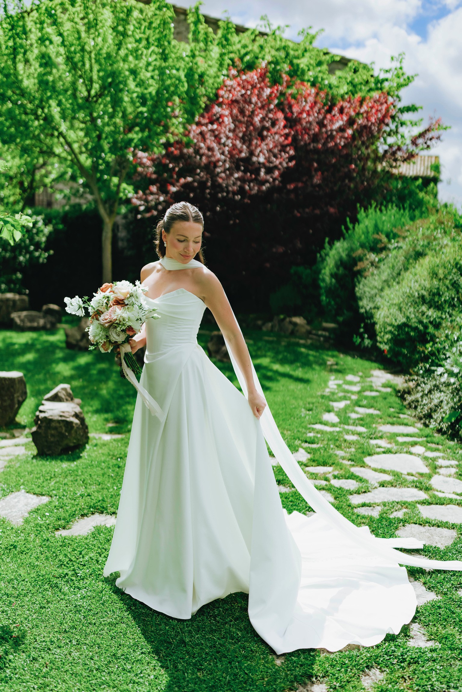 Sarah Seven Whisper! Dry cleaned - great condition. Floor length buttons added to back ($500 addition). So comfortable and flattering, I felt great all day long!! Only alterations were for length. I’m 5’7” without shoes.