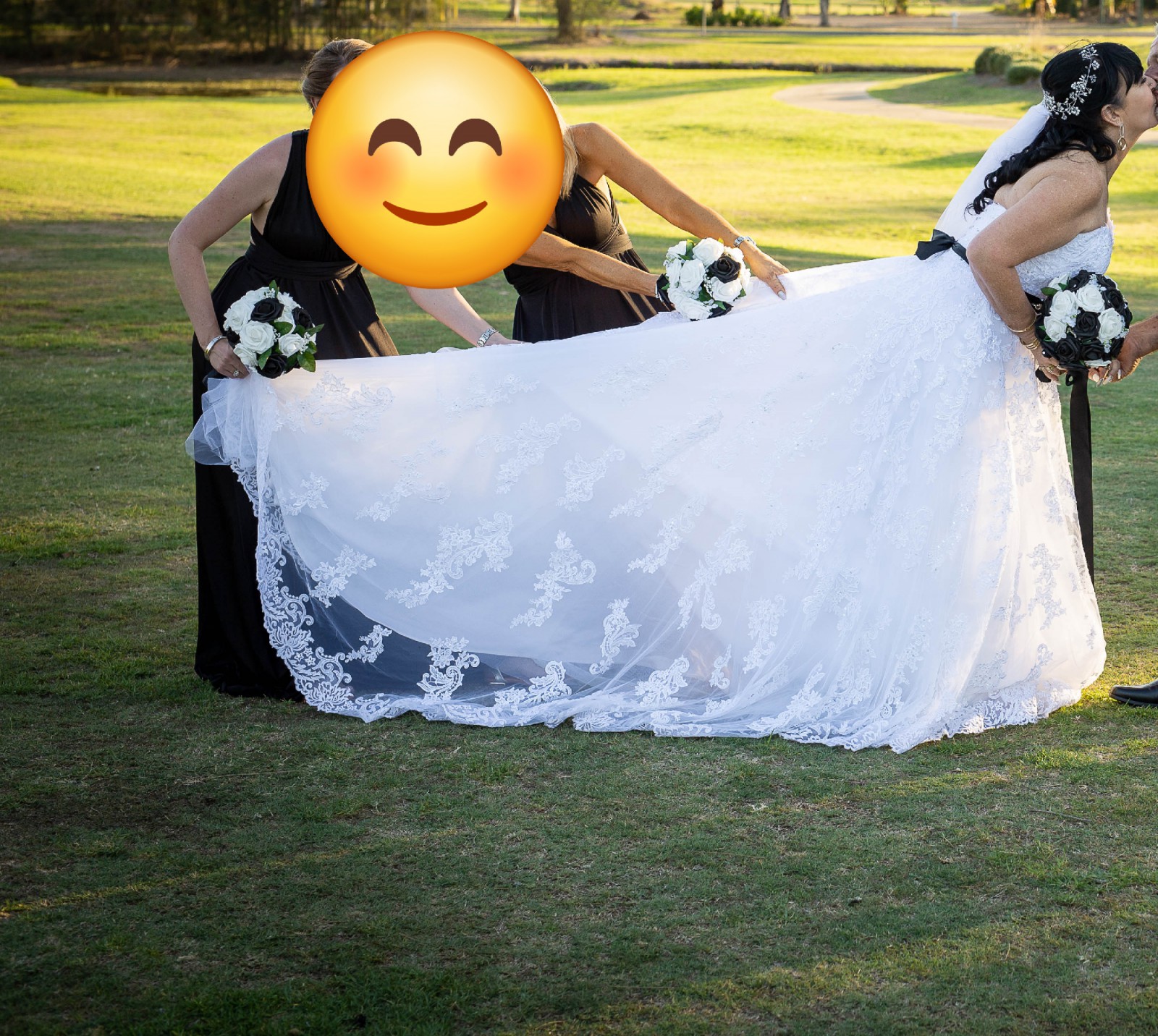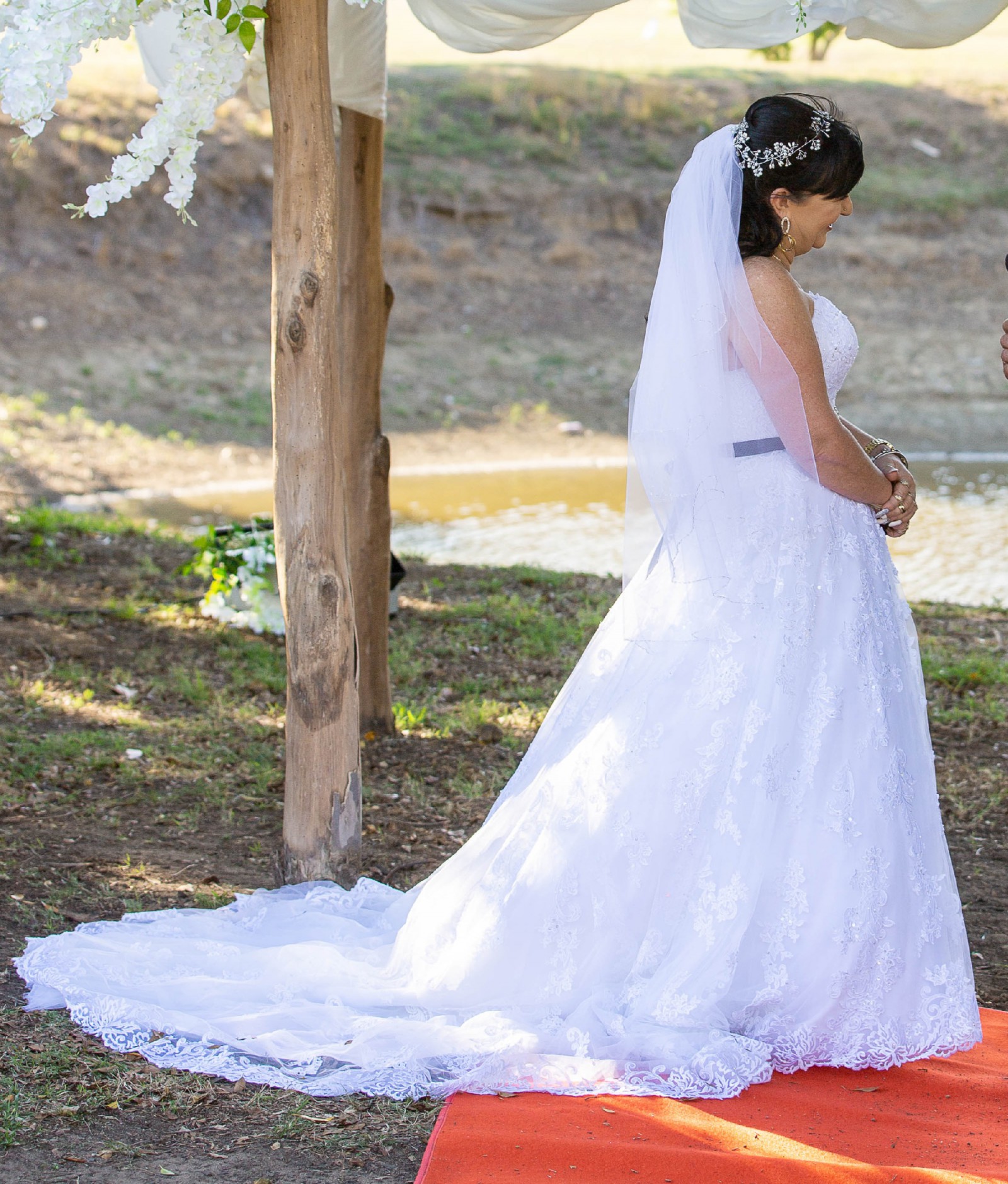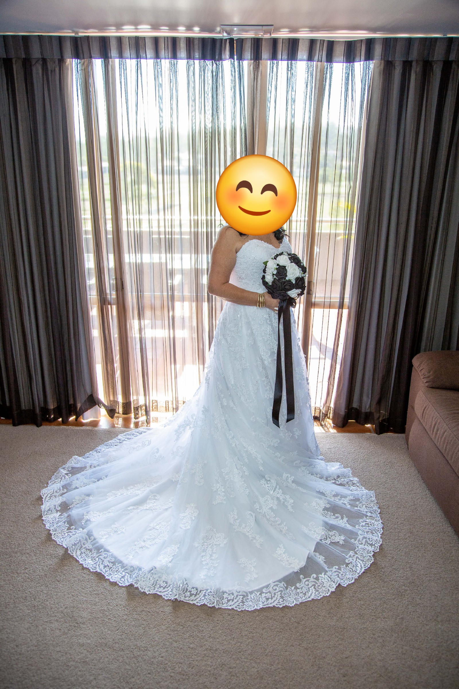 Beautiful size 12 dress that has a lace up back so can fit a 10 - 14. Professionally cleaned after use.