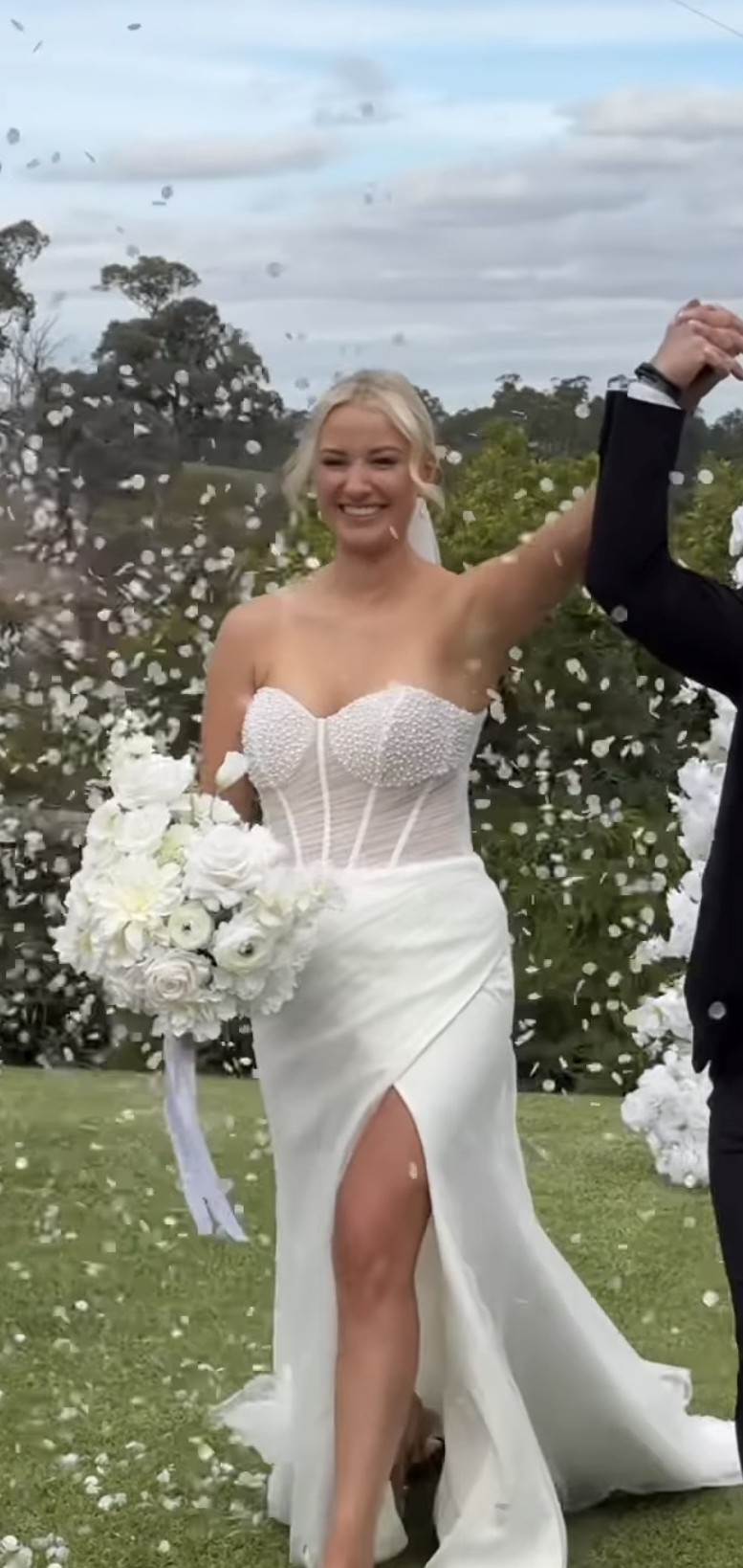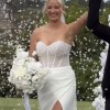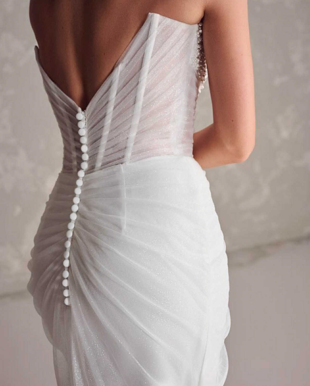 Selling my gorgeous Maggie Sottero “Cho” gown, worn once and professionally dry cleaned. Elegant, modern and super flattering with a pearl-detailed illusion corset, sparkle tulle skirt and thigh-high split.