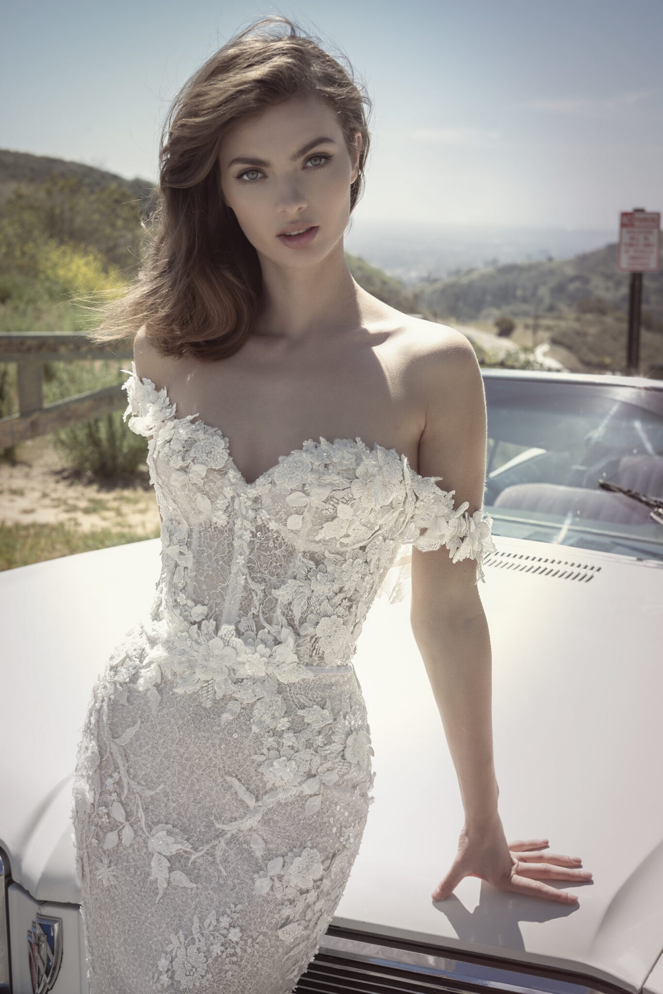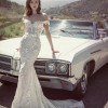 Never owned, never altered. Perfect condition. Bridal size 40T/US 8. Fit and flare wedding gown with texture lace applique off shoulder straps. Tags in tact!