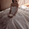 This gorgeous Steven Khalil gown has its moment in every sight. The structured corset bodice adorned with intricate lace embroidery holds the beautiful timeless elegance.