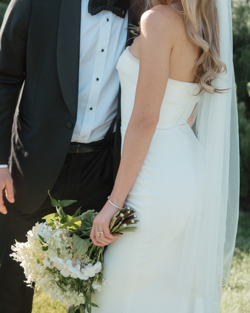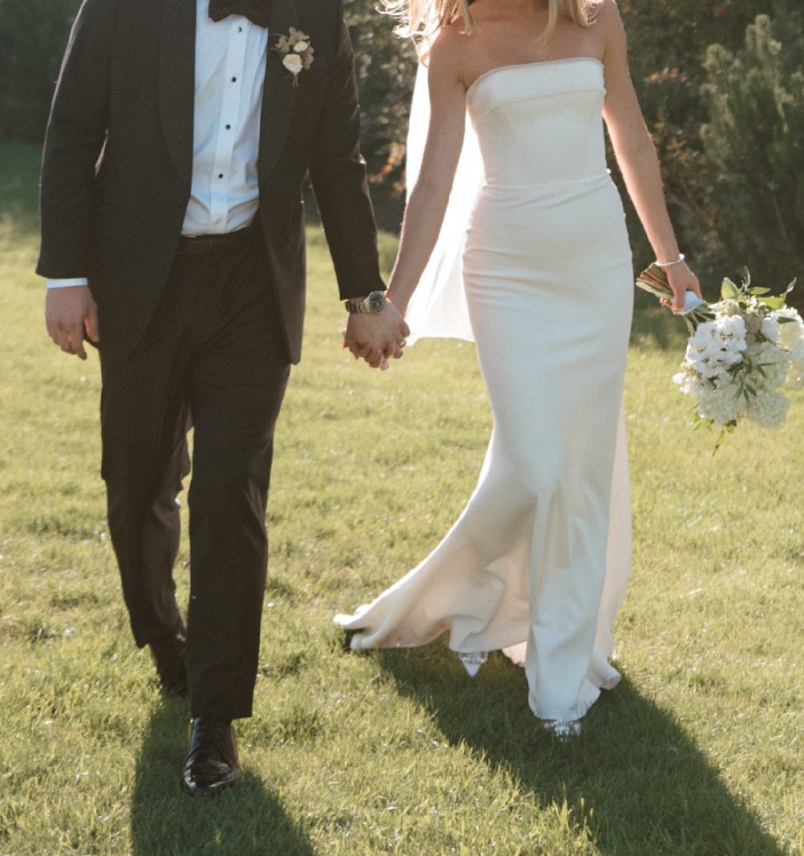 Dry cleaned no imperfections. This dress has been hemmed to fit 5'3 + 3 inch heel. I had a bust cup added for additional support.