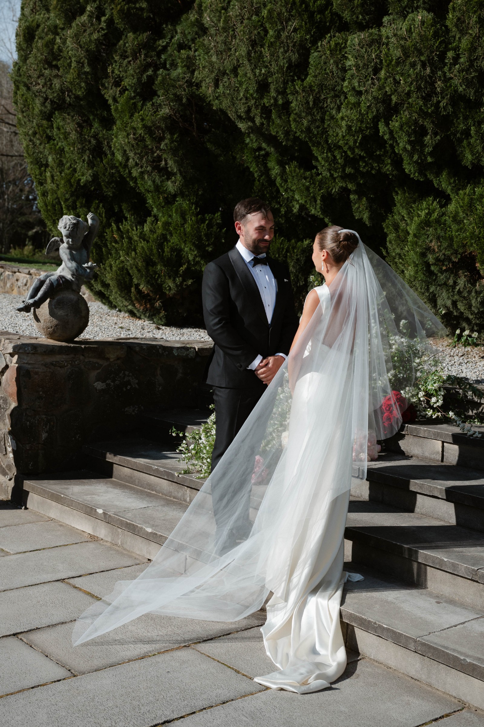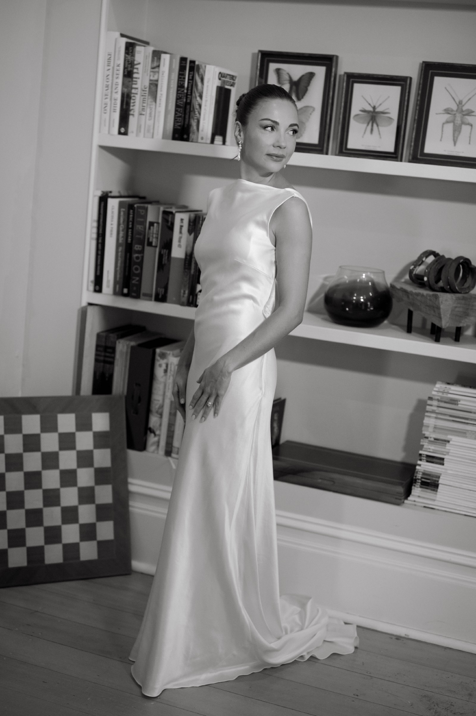 Purchased via Still White - with no alterations. I had the dress altered in length, to be worn with 9.5cm heels. I am 155cm tall, and the dress flooded around my feet. Refer to imagery for length. Measurements can be provided if required.