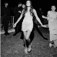 This strapless mini dress in Swarovski-embellished crochet fabric with hand-draped, wrap skirt is truly incredible! The Renee dress by Dana Harel truly made my afterparty dress change unforgettable.