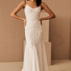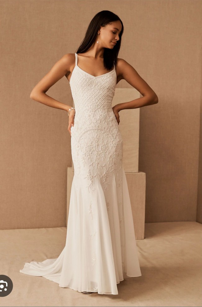 This Beldina wedding dress by BHLDN is a stunning choice for the modern bride who wants to make a statement on her special day. Crafted from intricate fabric with a fit and flare silhouette, it beautifully accentuates your curves while allowing for graceful movement throughout your ceremony and reception.