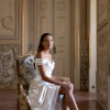 This stunning Nova Cocotte dress by Vivienne Westwood embodies timeless elegance and sophistication. Made from luxurious heavy silk satin, the gorgeous ivory color radiates purity and romance, perfect for your special day. The A-line silhouette flatters every figure, gently flowing from the waist down to create a beautiful, ethereal look as you move.