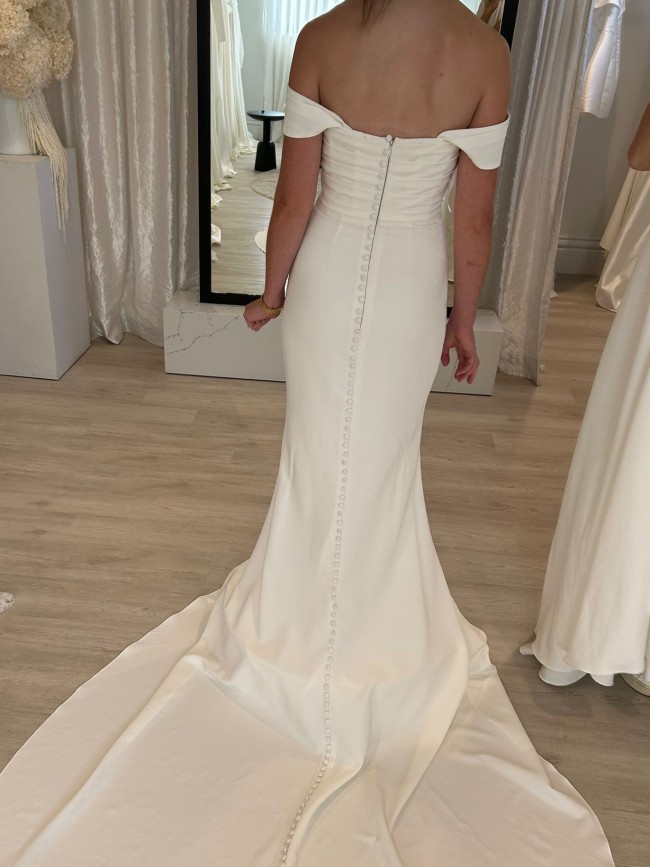 I bought this dress on here for $1500. I never wore the dress due to the wedding not going ahead. The dress was exactly as described which is what I've added below in quotation marks. I tried this dress on once and it has been kept in a wedding storage box since in a well ventilated room.
