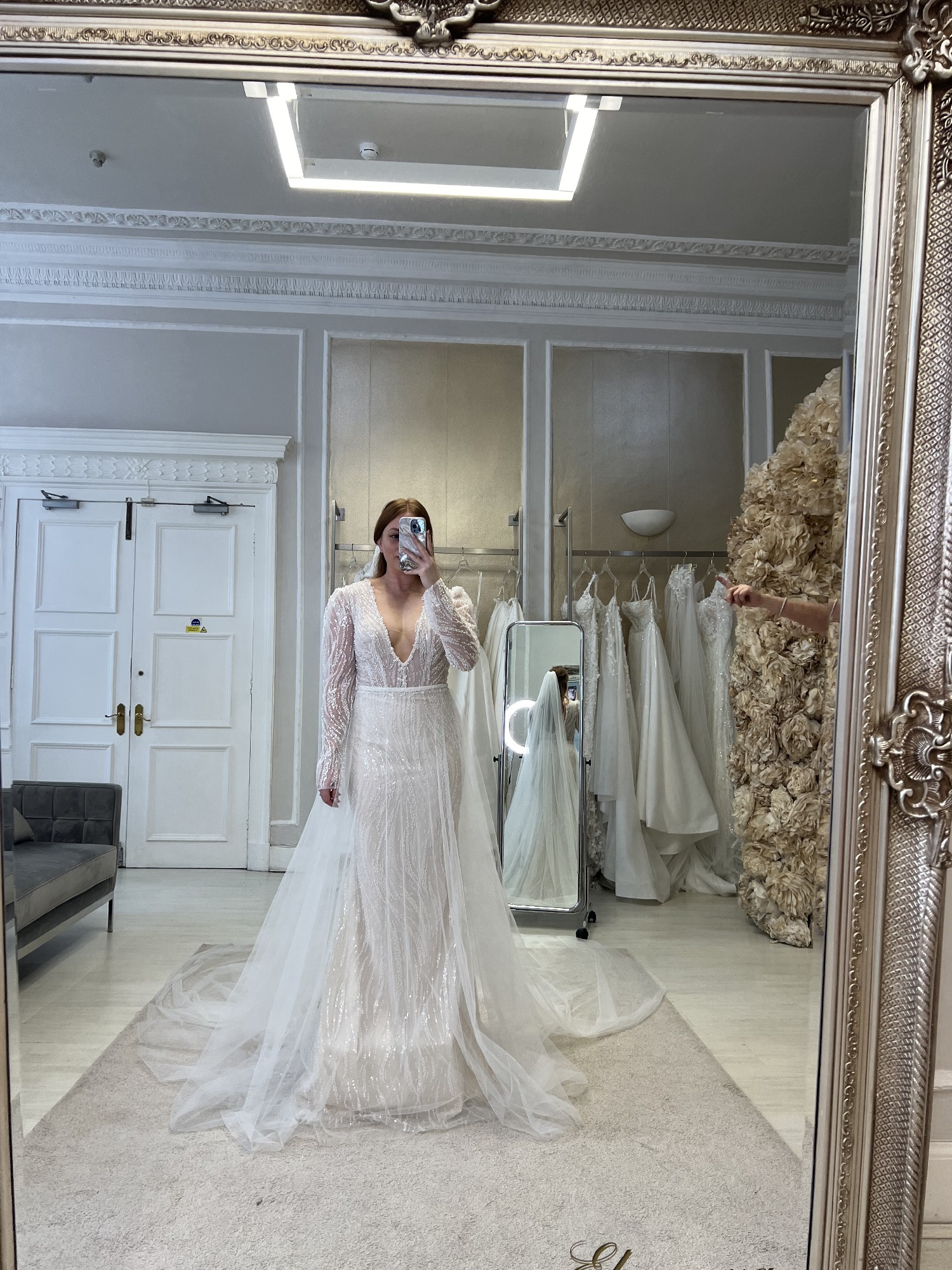 Optional overskirt included in price which was an extra £460. Please see the photos of myself this is with the skirt on, unfortunately didn’t take any of me in the dress without the skirt on.