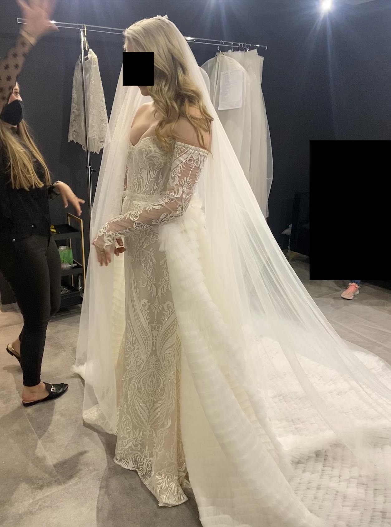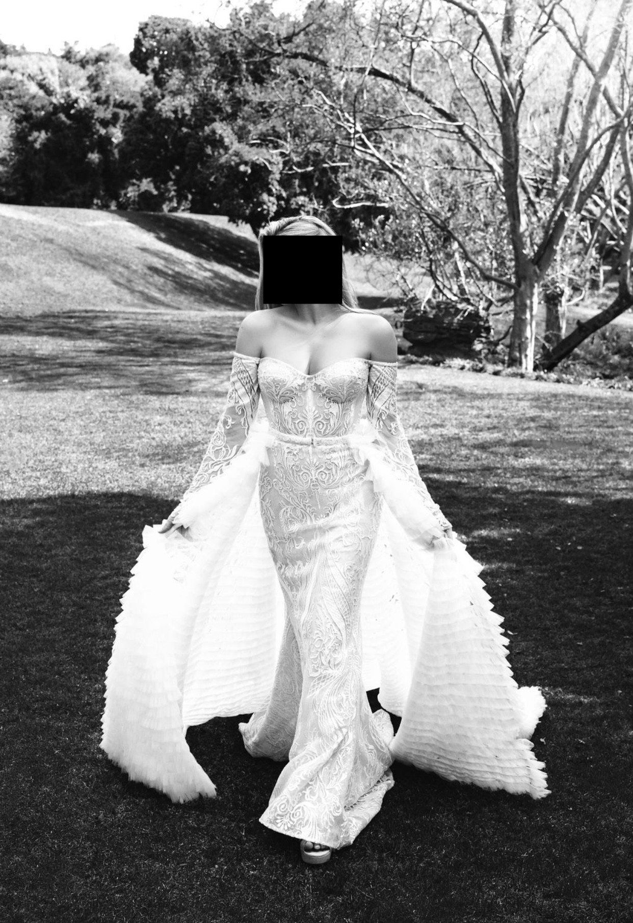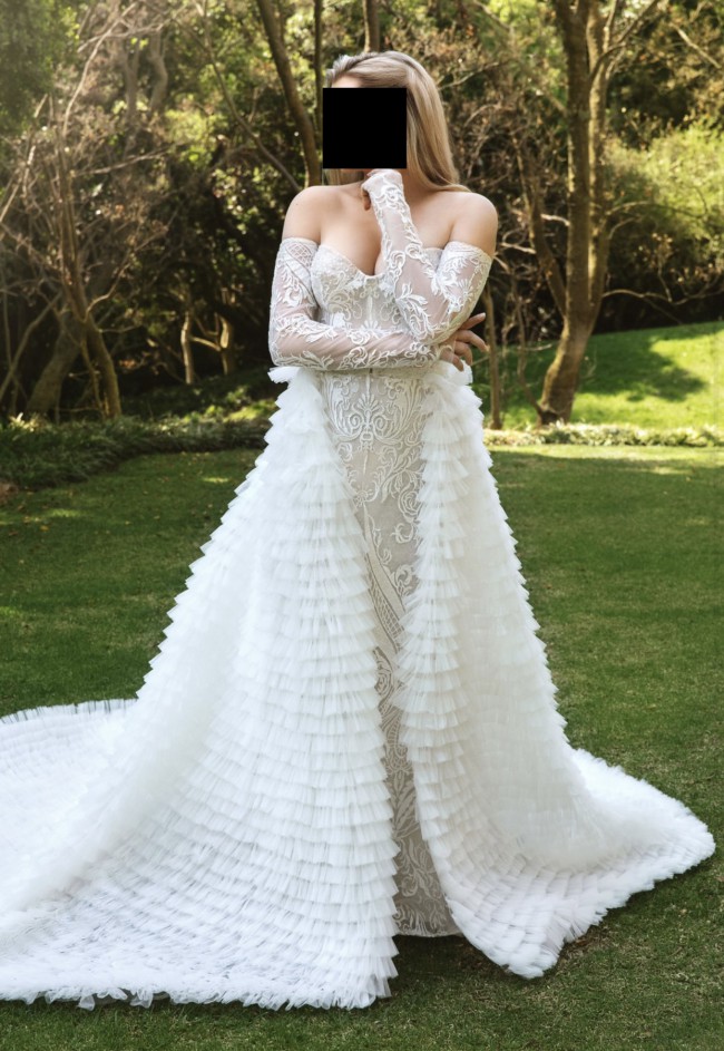 Fully beaded mermaid gown with a detachable tulle skirt