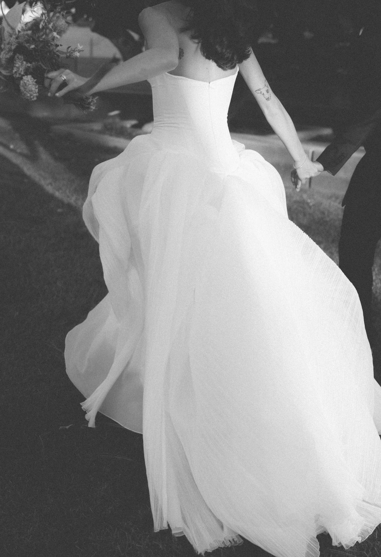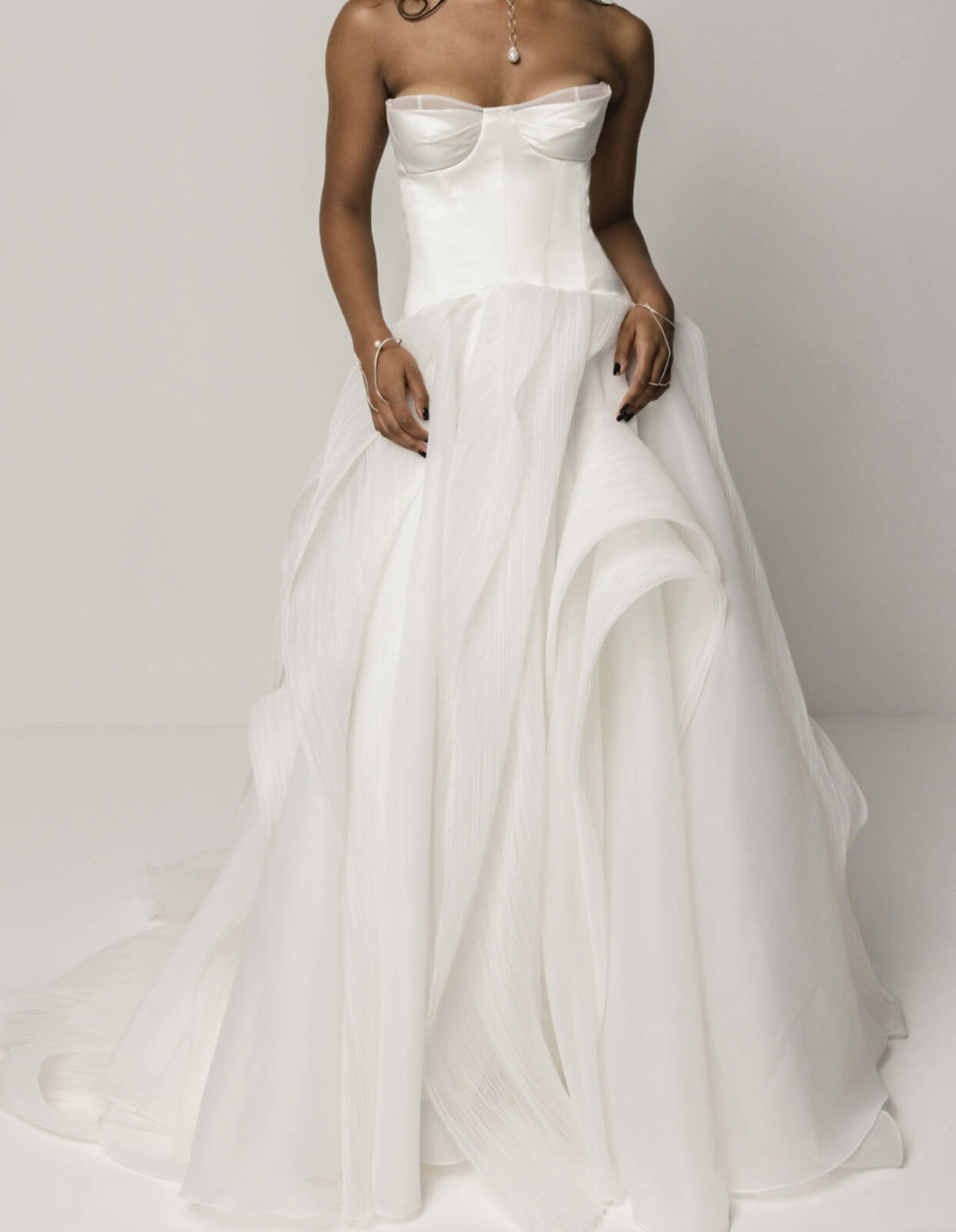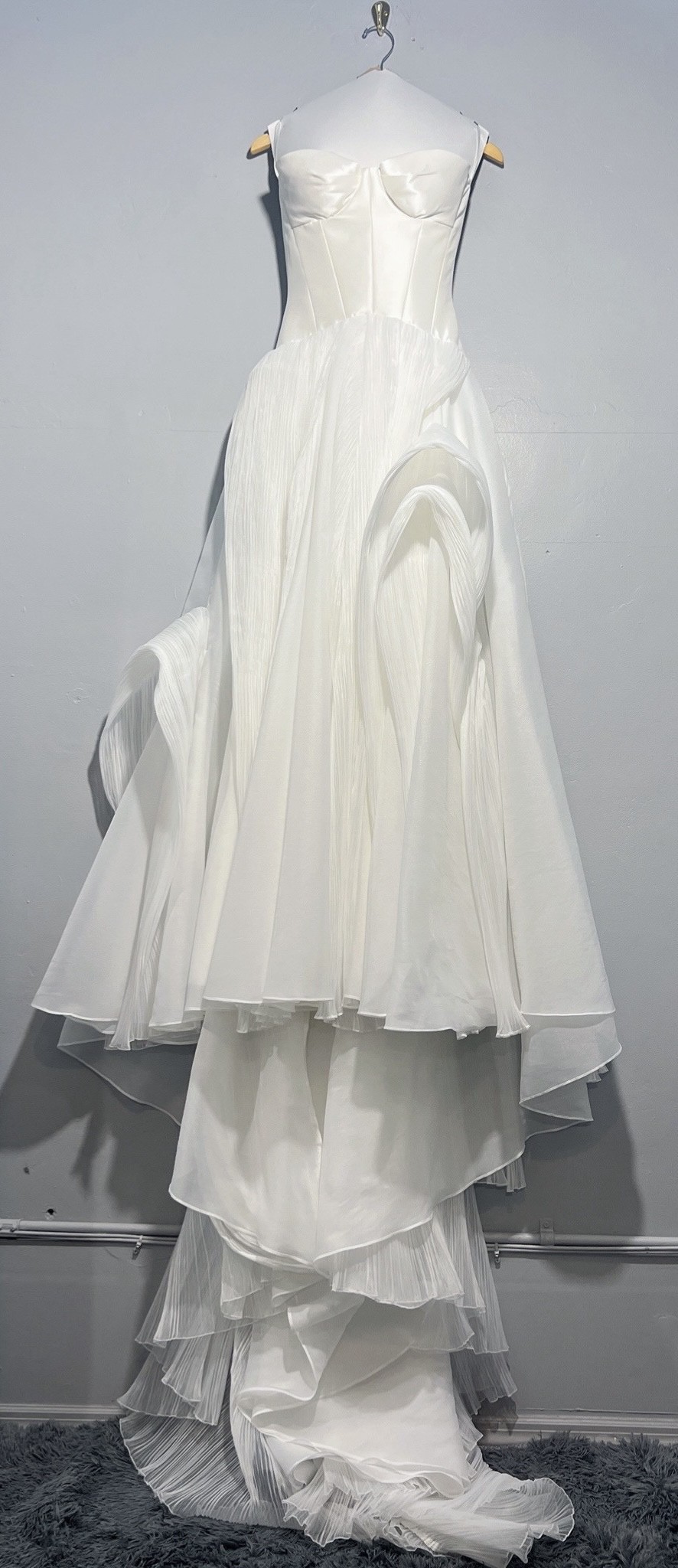This dress retails for $4500, plus I went to a high quality tailor and spent $2600 on alterations to get it taken in, hemmed, added two hooks for a bustle, and added in cups (that can be removed if needed).