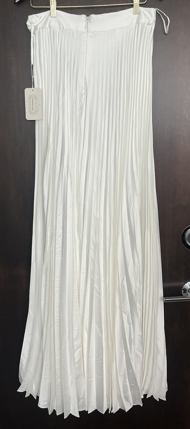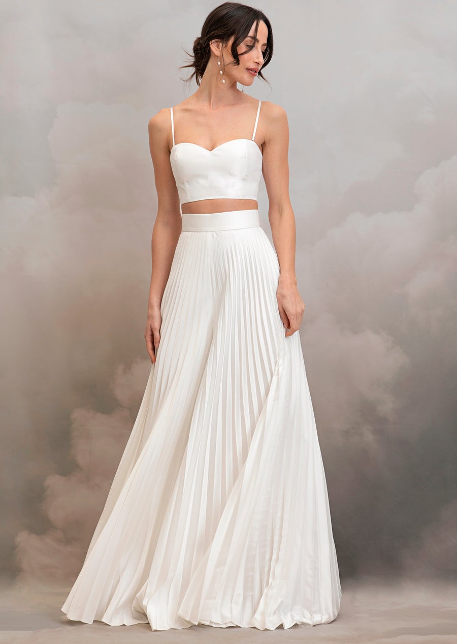 Dance the night away in the dramatic and fun Athena wide leg trousers. These high waist trousers are created from luxurious eco satin with sunray pleated details. The Athena Trousers pair beautifully with an array of our bridal separates, allowing you to create your own unique bridal look.