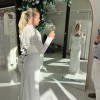 It really is a beautiful dress but I ended up finding a different one that felt more like me and I am hoping that I can find a bride who sees this dress and has that same feeling, “this is my wedding dress” feeling. It is extremely comfortable to wear and light weight. The intricate details are gorgeous throughout and you feel like a princess when you wear it. It can be worn in any season as the long sleeve overlay is not attached to the dress so can be taken off at any time and it is a very breathable dress.