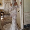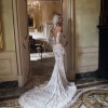 The mermaid silhouette is perfectly tailored to accentuate the figure, while the butterfly-shaped neckline frames the décolletage in soft, romantic detail. The gown features detachable lace sleeves for two looks in one: a timeless ceremony style that transitions seamlessly to a sleek, modern reception moment.