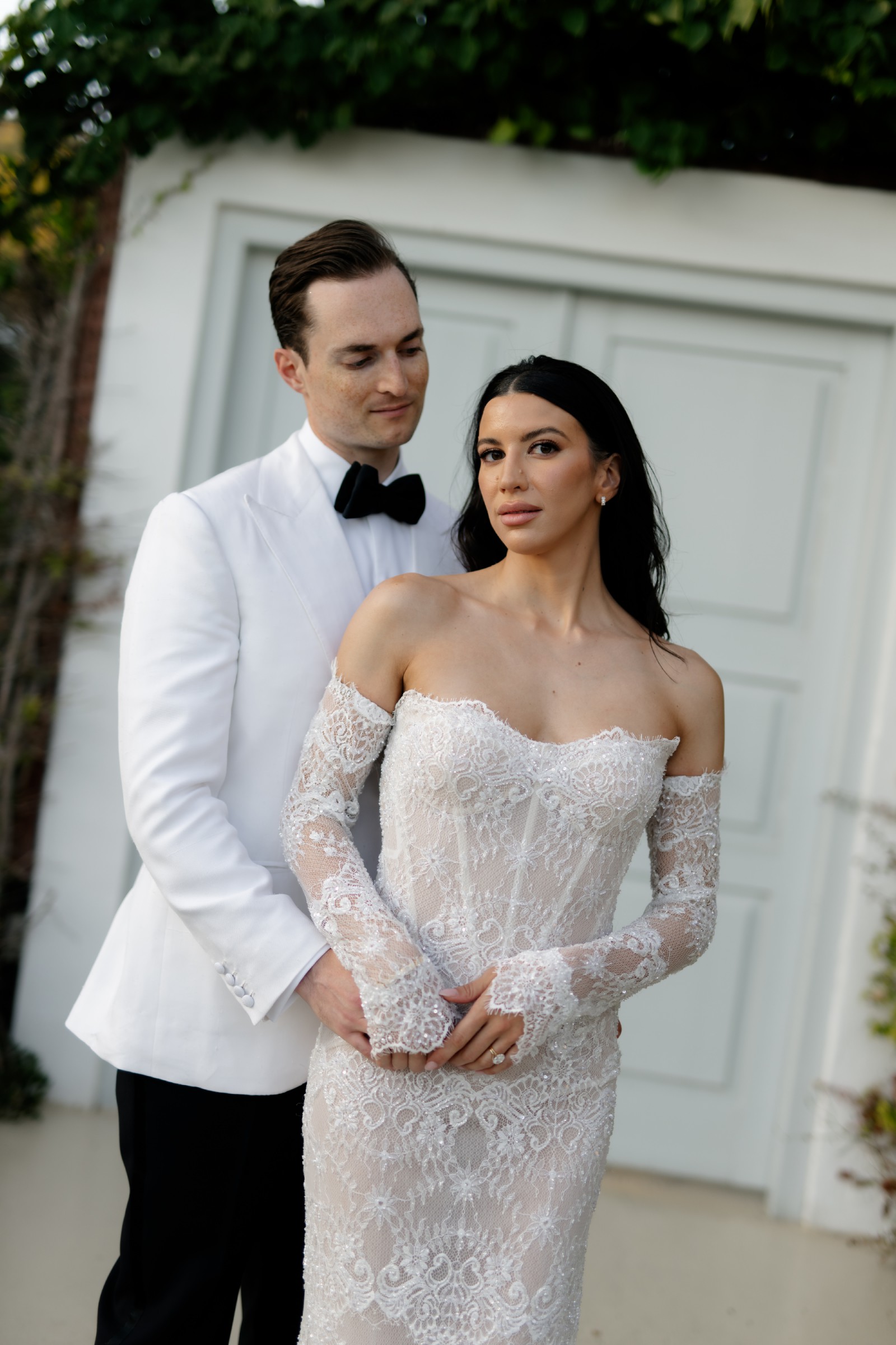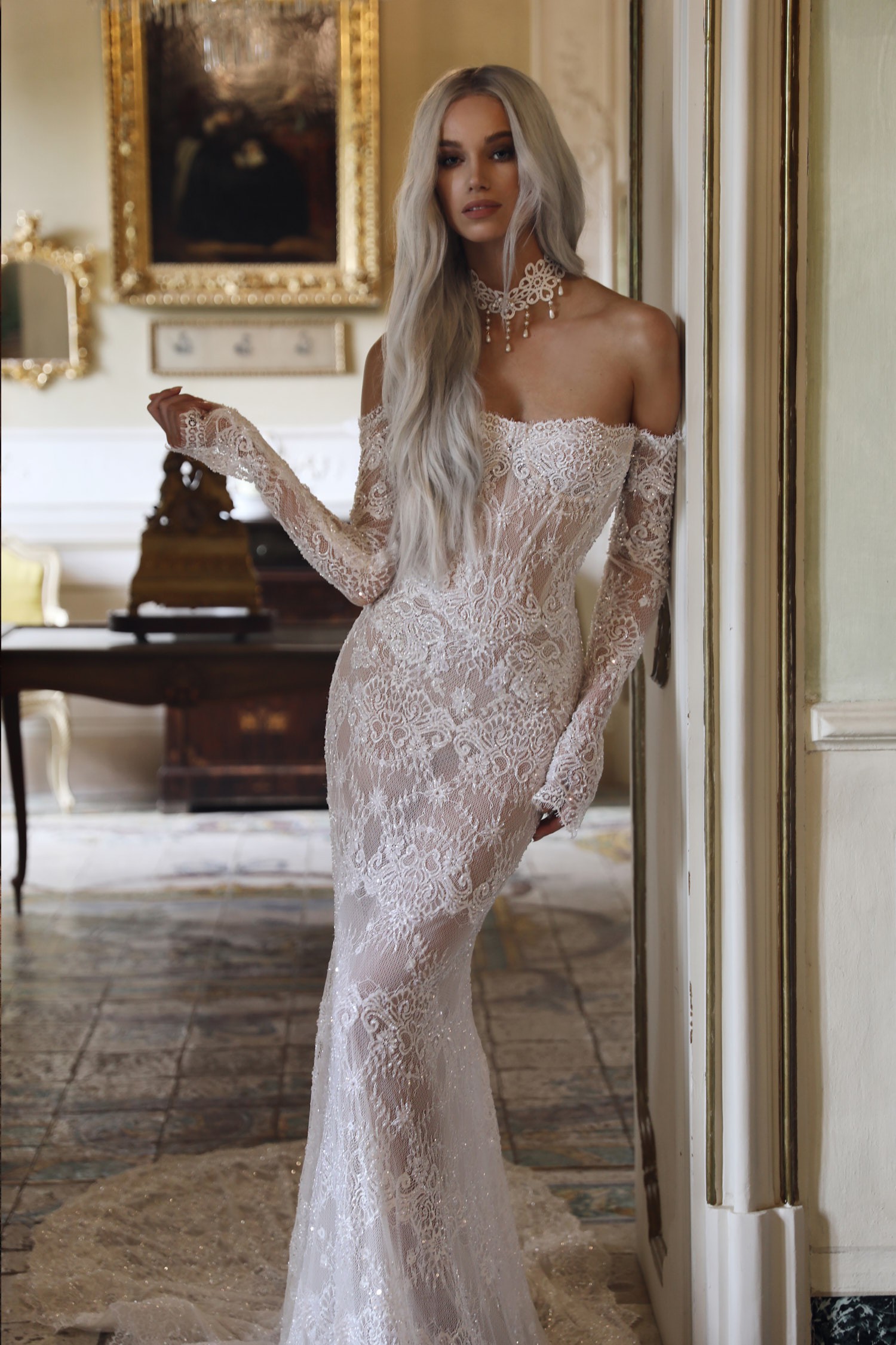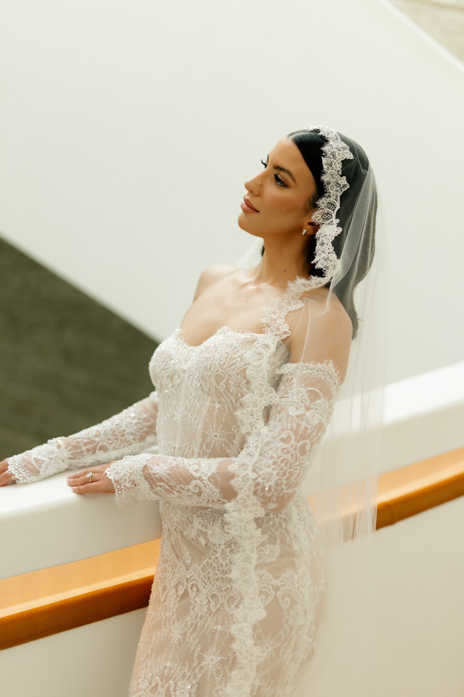 The intricate royal lace pattern and subtle shimmer give the gown a regal yet ethereal quality, making it ideal for brides who want to embody grace, femininity, and quiet glamour. It’s a gown that feels rare — I truly hadn’t seen anyone wear anything quite like it before. Depending on your veil and accessories, it can easily be styled to feel classic and romantic or fashion-forward and editorial.