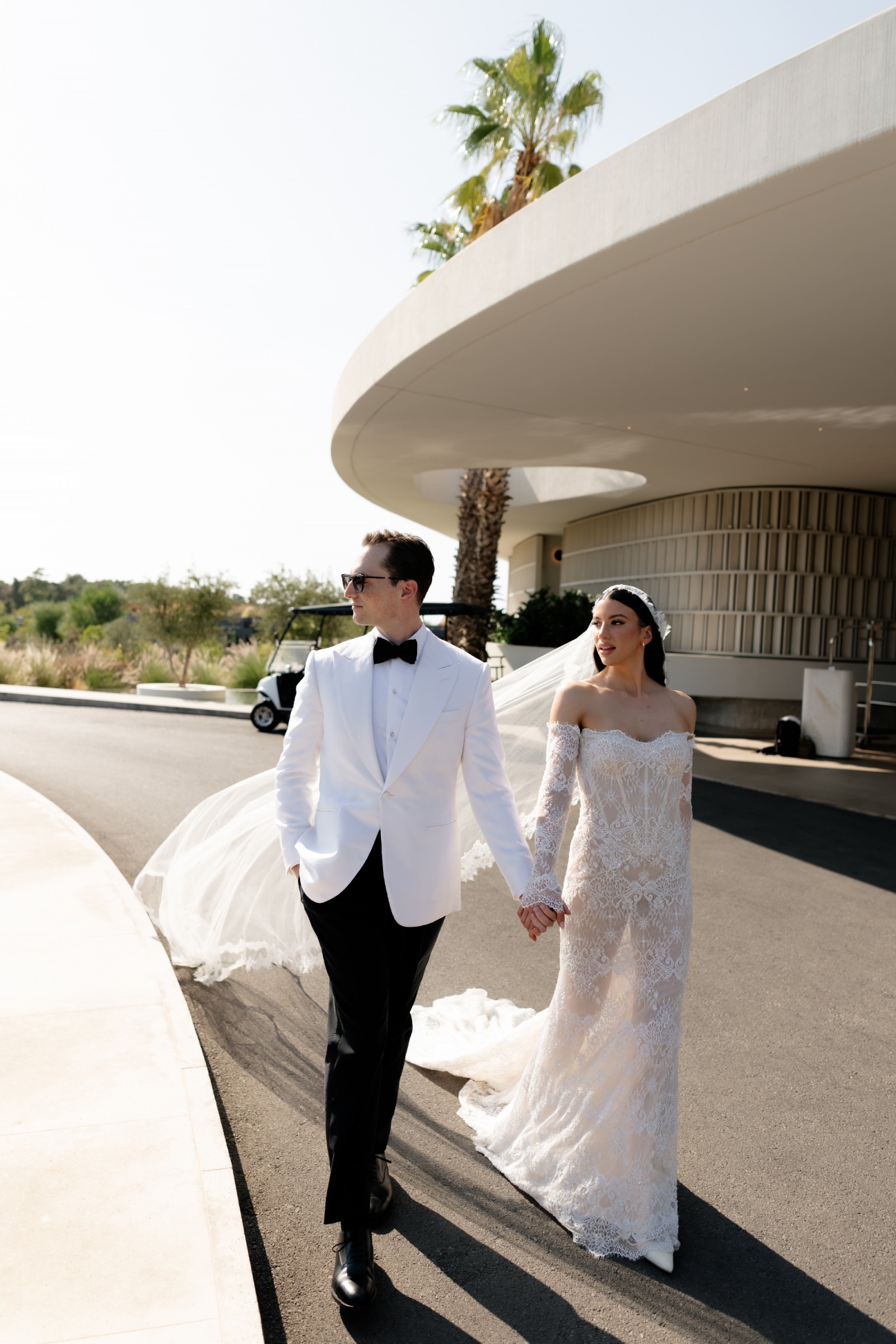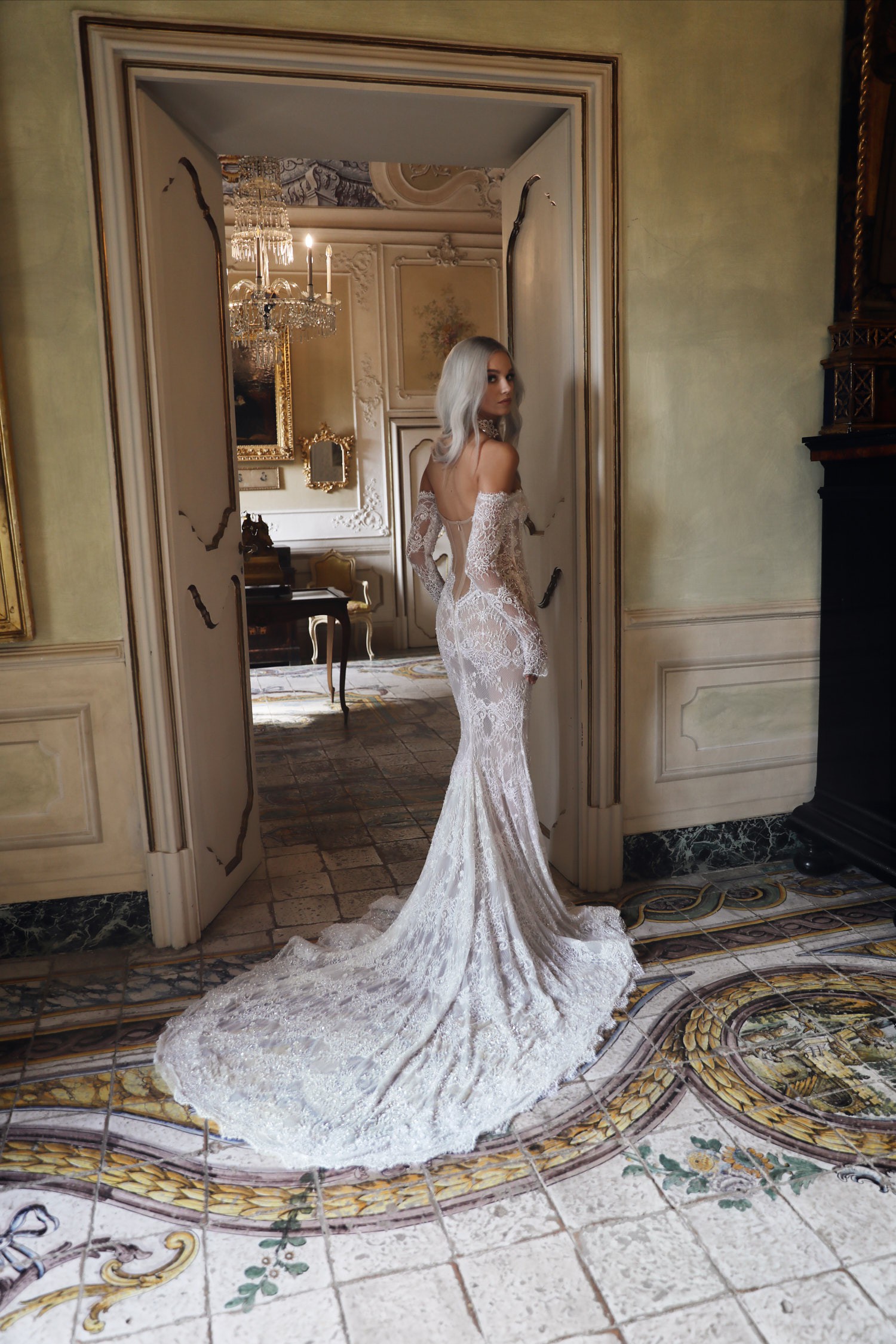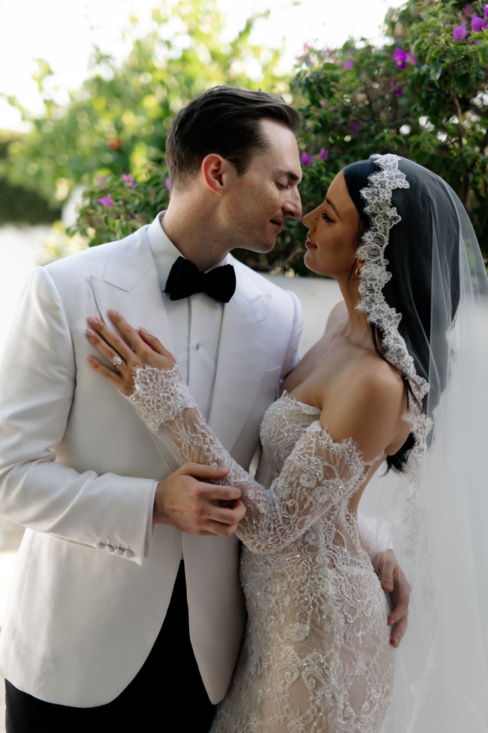 The intricate royal lace pattern and subtle shimmer give the gown a regal yet ethereal quality, making it ideal for brides who want to embody grace, femininity, and quiet glamour. It’s a gown that feels rare — I truly hadn’t seen anyone wear anything quite like it before. Depending on your veil and accessories, it can easily be styled to feel classic and romantic or fashion-forward and editorial.