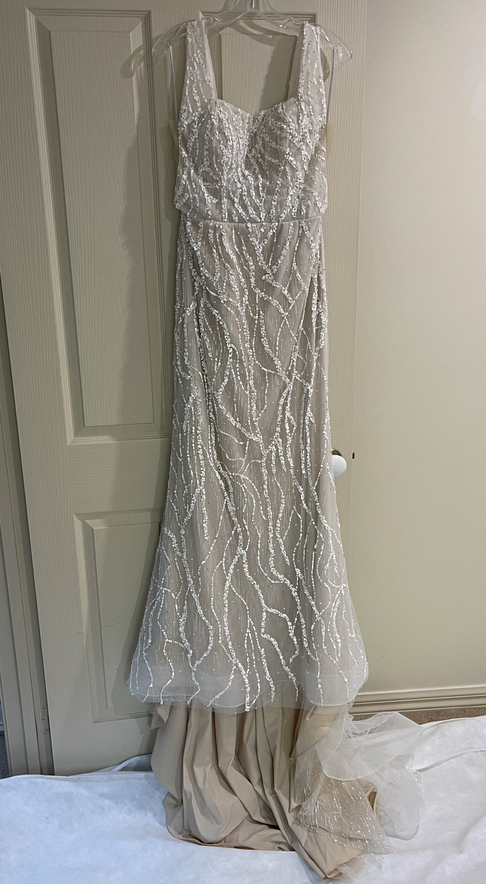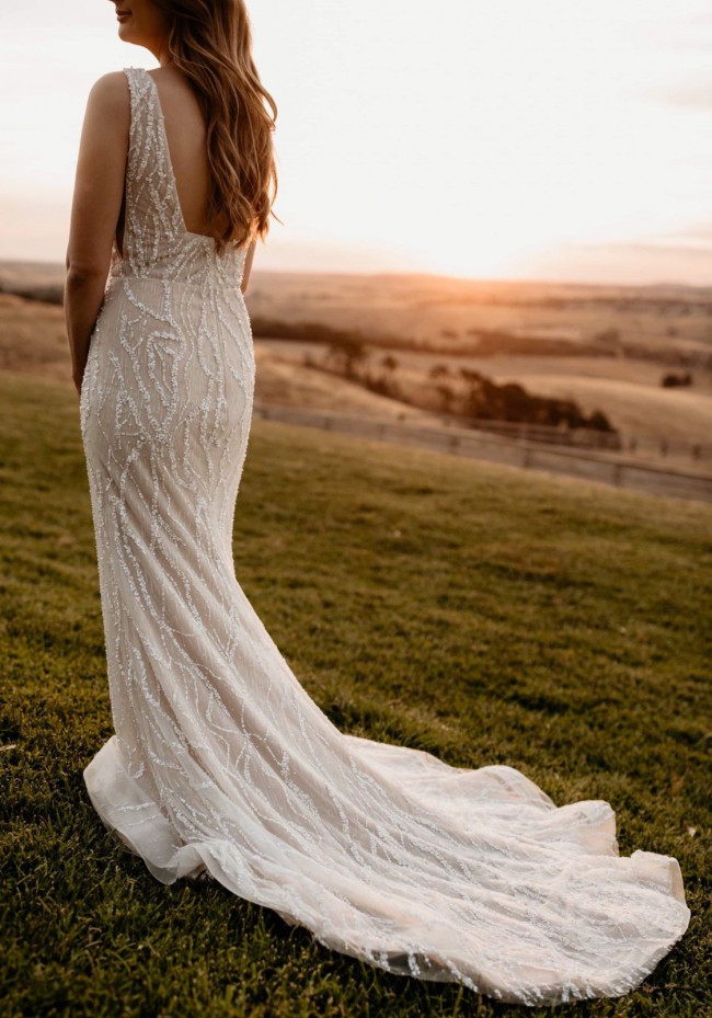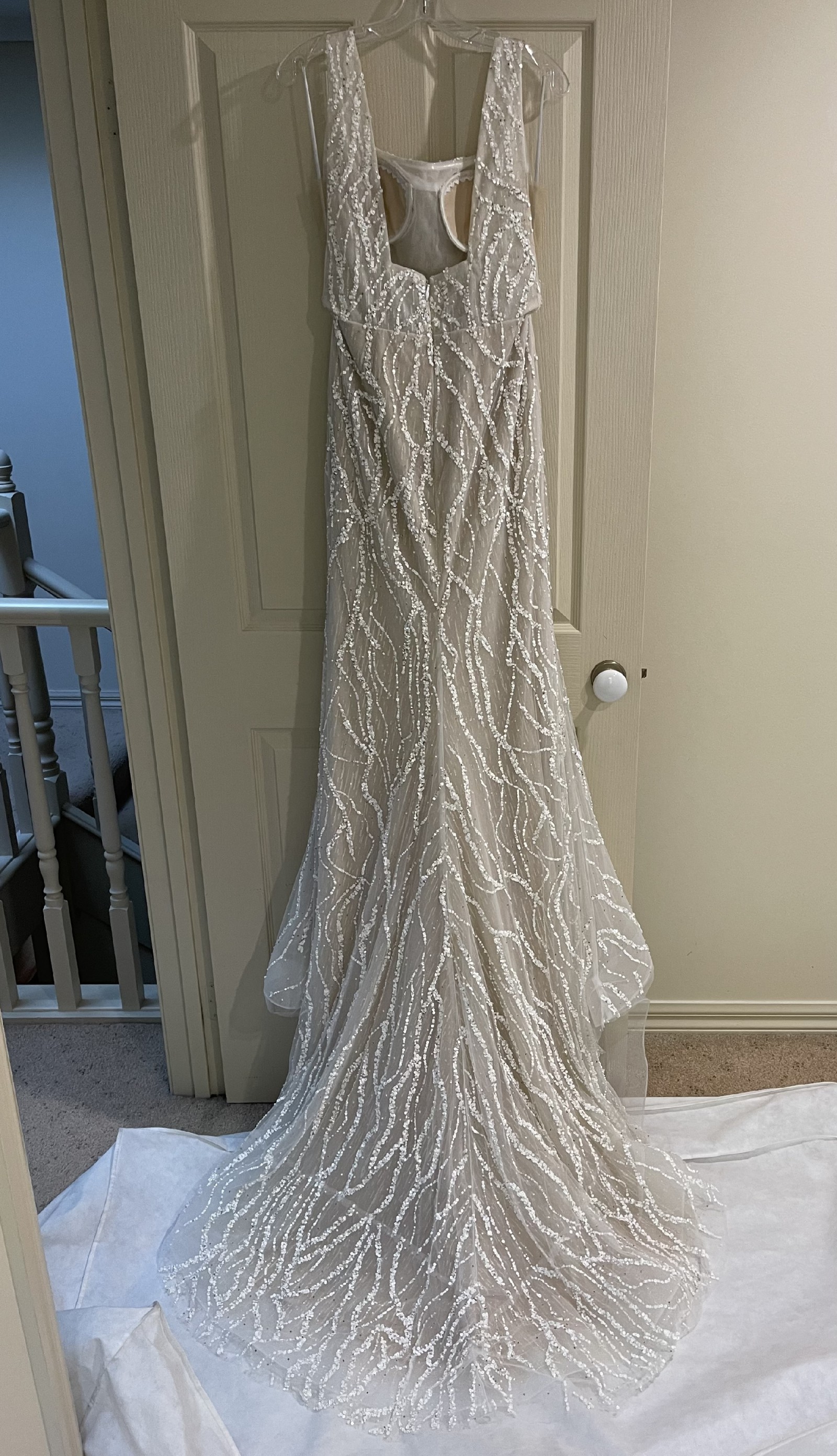 Raffaele Ciuca ‘Milano’ dress. This was my dream dress! It has a square neckline and low, square back, and 4 layers, each with a different design to give it depth. Outermost layer is beaded and has sequins, and makes the dress sparkle ✨ Very comfortable to wear, and only worn once!