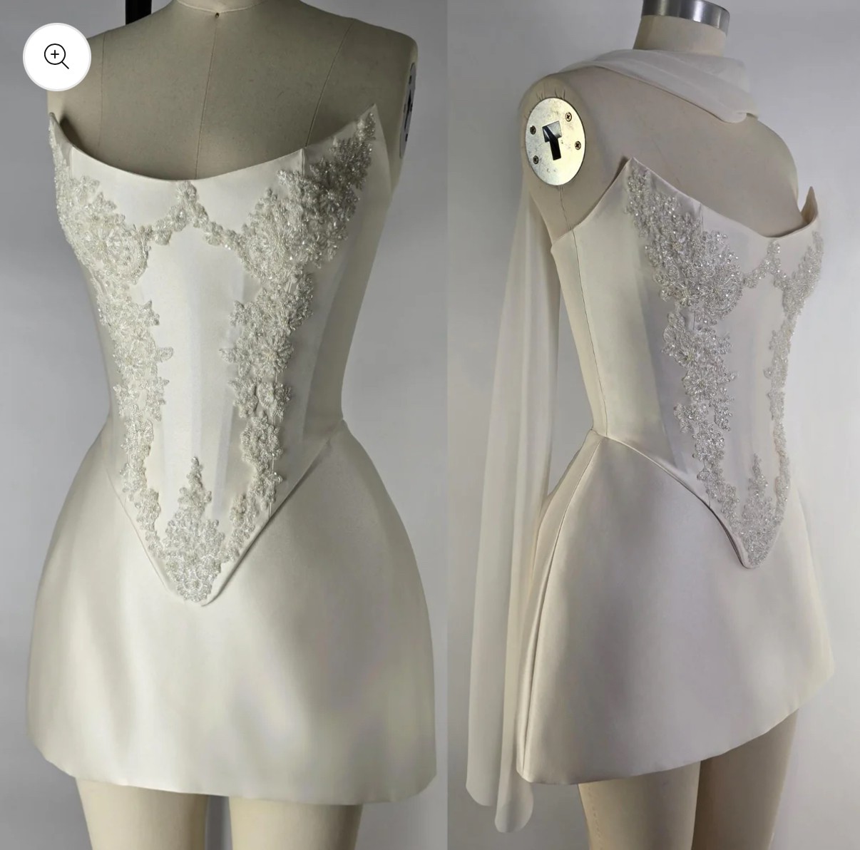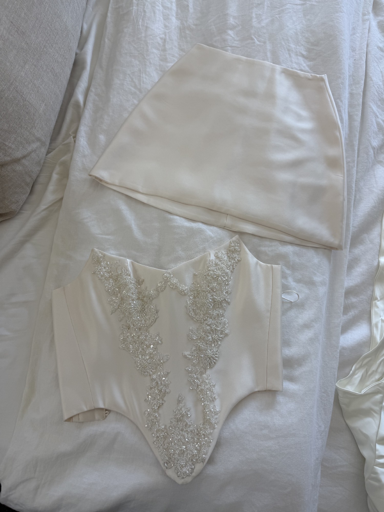 I wore this set for my courthouse wedding and it is GORGEOUS. The beadwork and detailing is beyond and pictures don’t do it’s justice! This was only worn a few hours and is in near new condition.