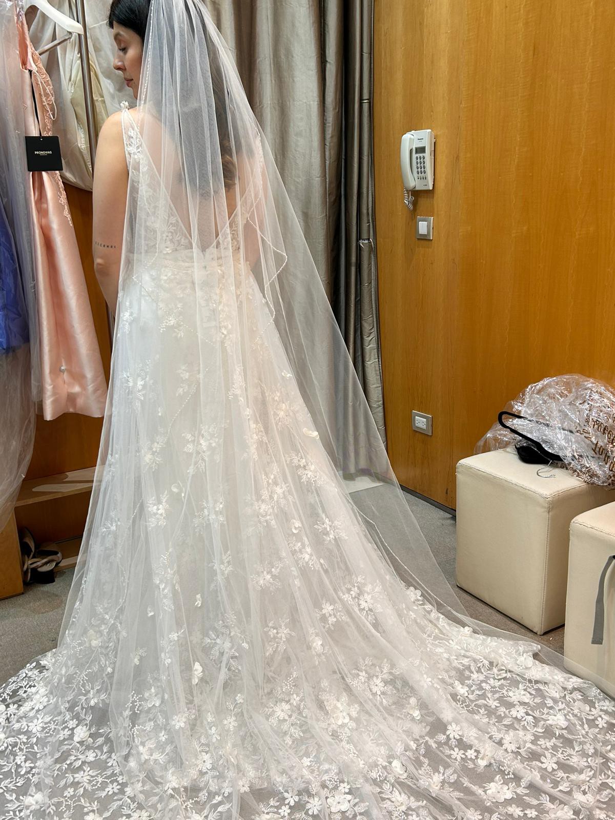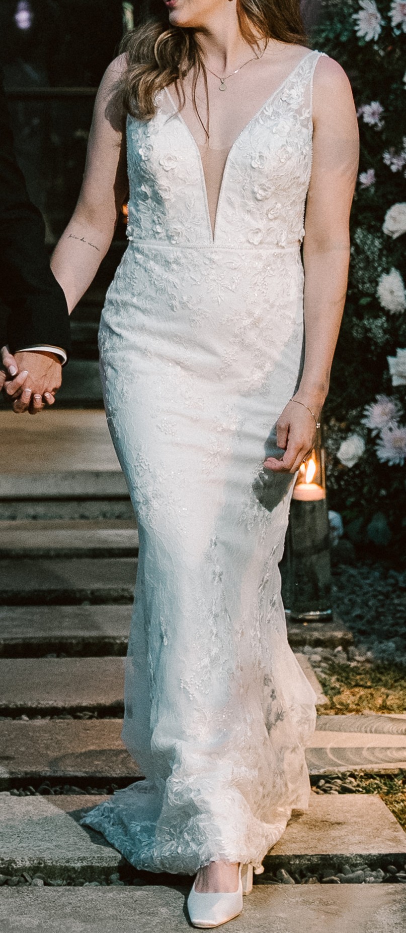 Selling my beautiful Pronovias Marli wedding dress, worn once on my wedding day. It’s an elegant yet modern gown with the most flattering silhouette and gorgeous detailing that made me feel amazing all day. It has 3D flowers and beading.