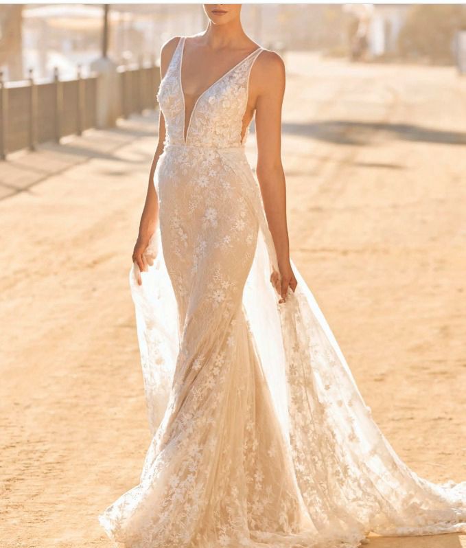 It comes with a matching overskirt that adds extra drama for the ceremony and can be removed for the reception if you want a lighter, more fitted look. The dress has been gently cared for, stored safely in its garment bag, and is ready for another bride to love just as much as I did.