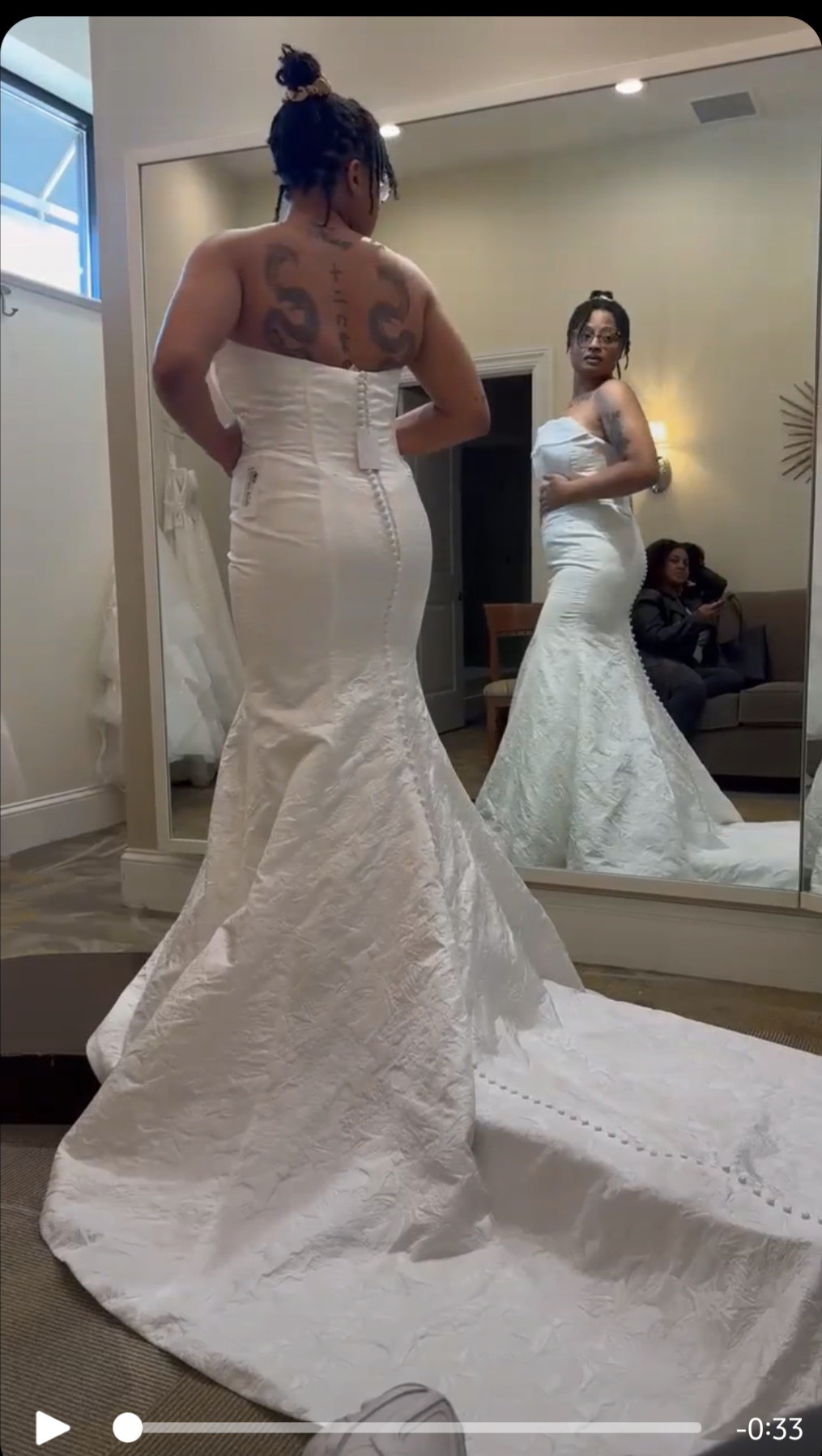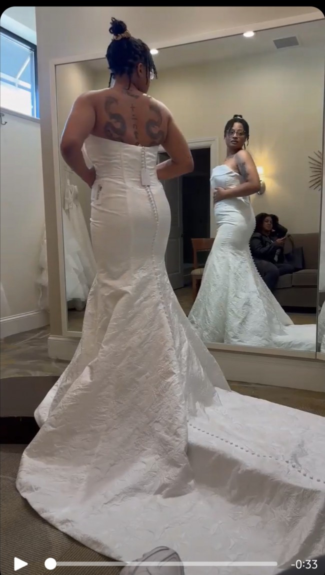 Beautiful Jaquard wedding dress thats never been worn for a wedding/event. Just tried on twice. Comes with the overskirt as well.