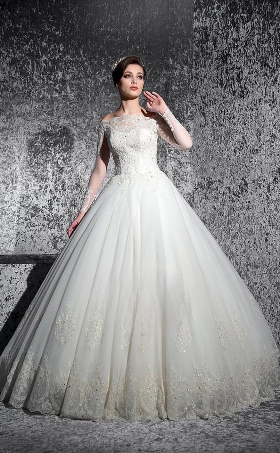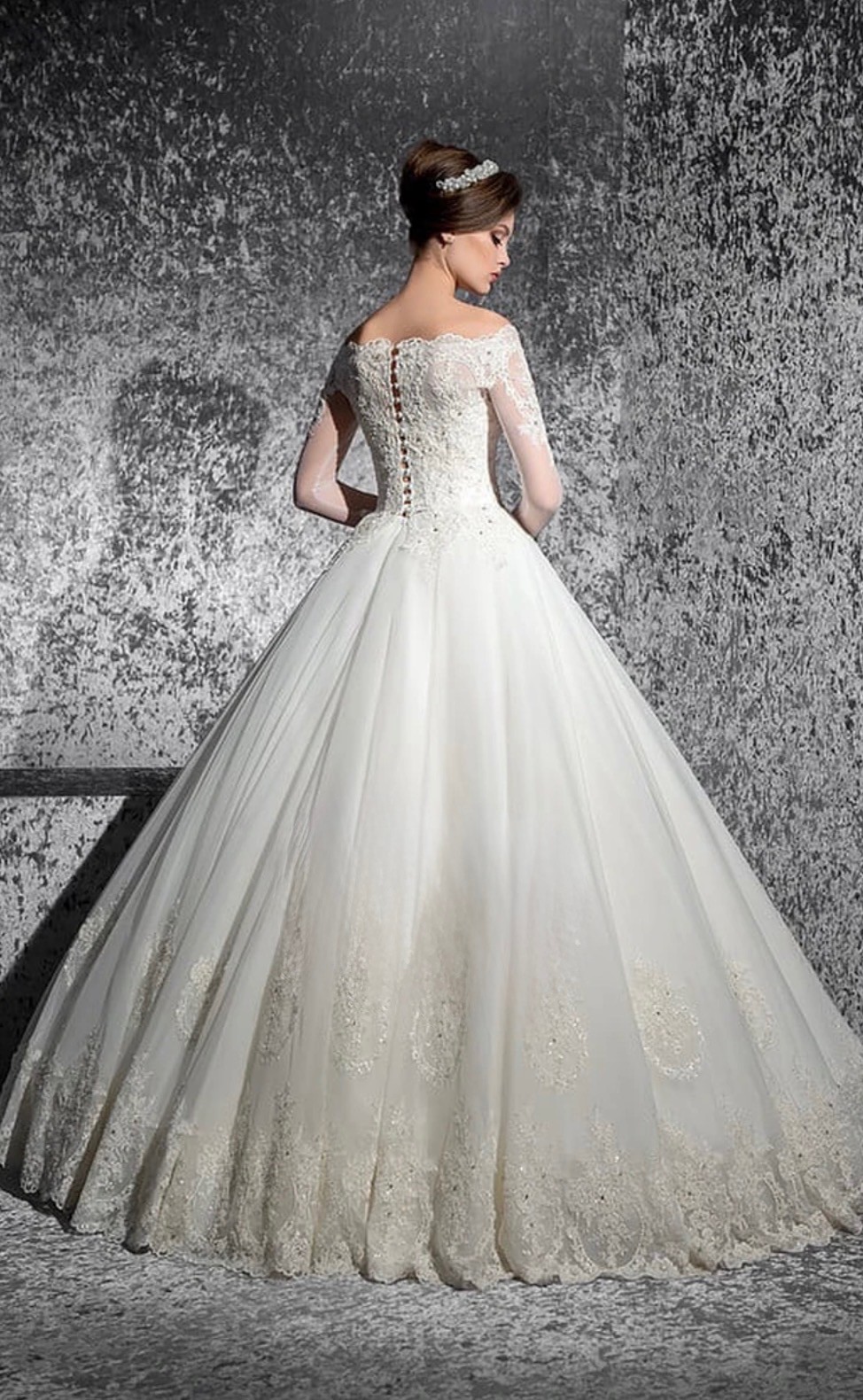 NEW (never used) Off-The-Shoulder Ball Gown Wedding Dress with Beading and Appliqués