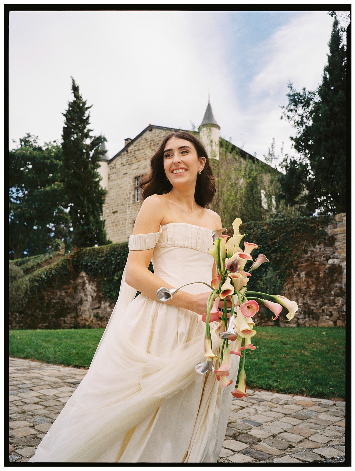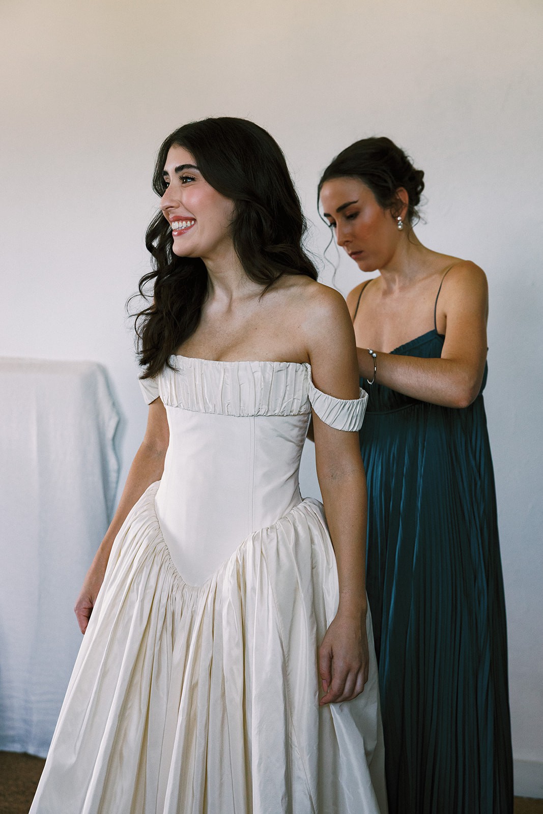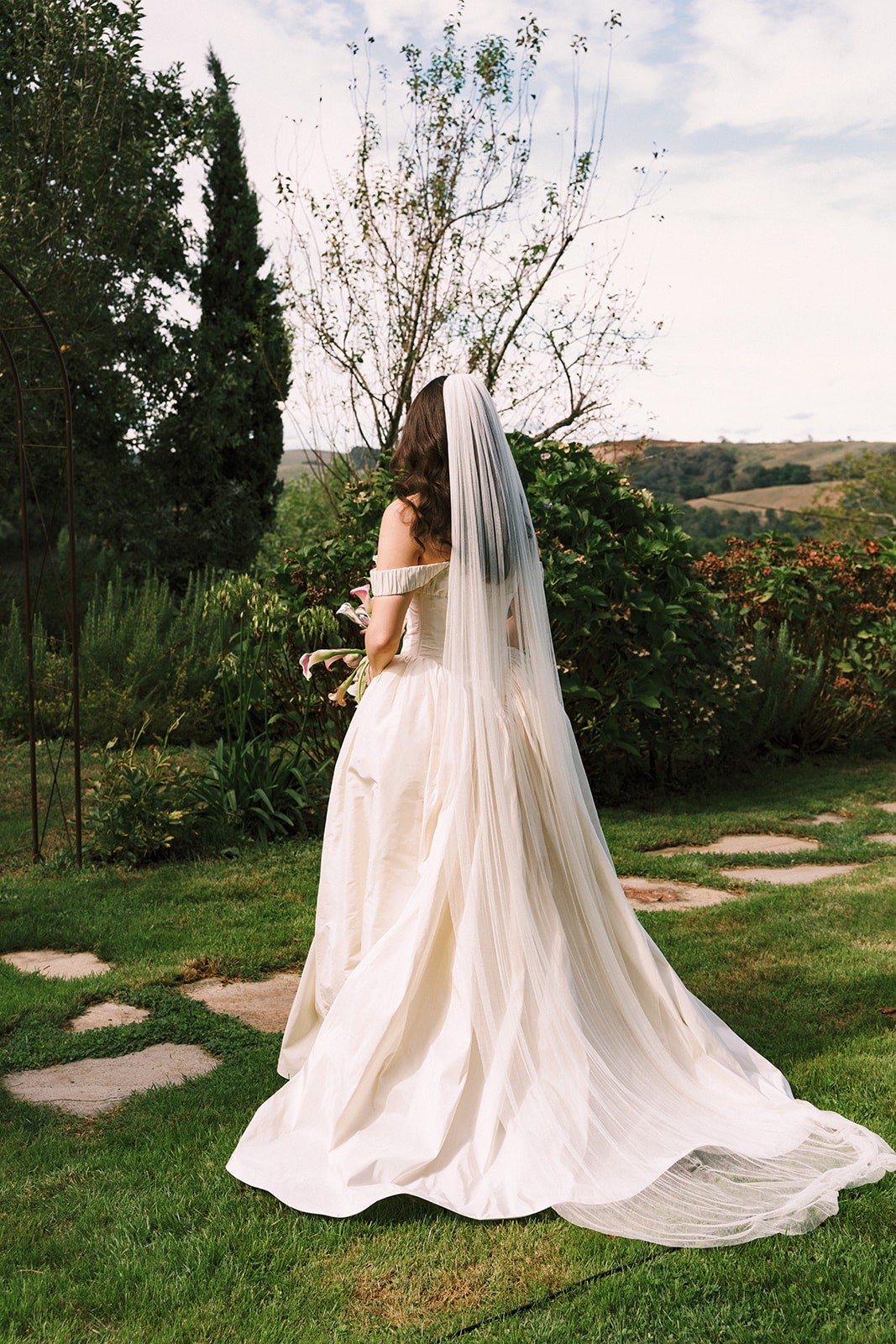 I purchased this CINQ Louise gown directly from their flagship Venice studio for my August 2025 wedding. It’s a beautifully romantic, off-the-shoulder silhouette.