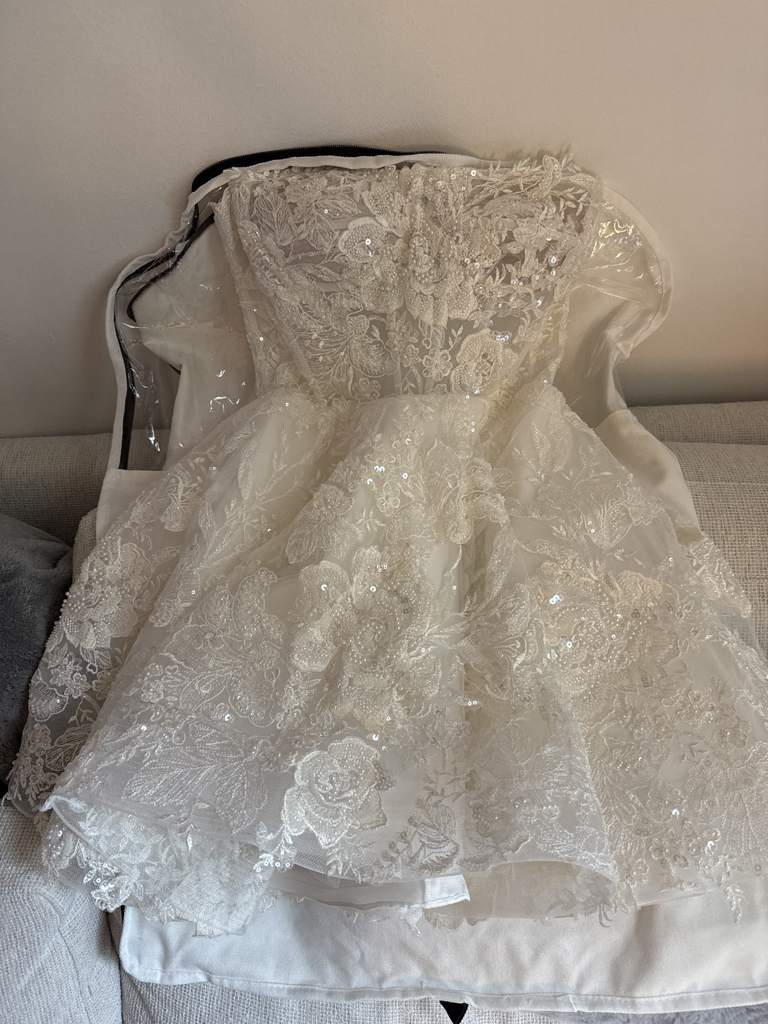 Jacqueline dress by Untamed Petals in a size 2. Measures 17" waist to hem. Worn once for wedding reception! This dress measurements are as follows: Chest 33.5 inch Waist 26 inch Hip 37 inch