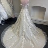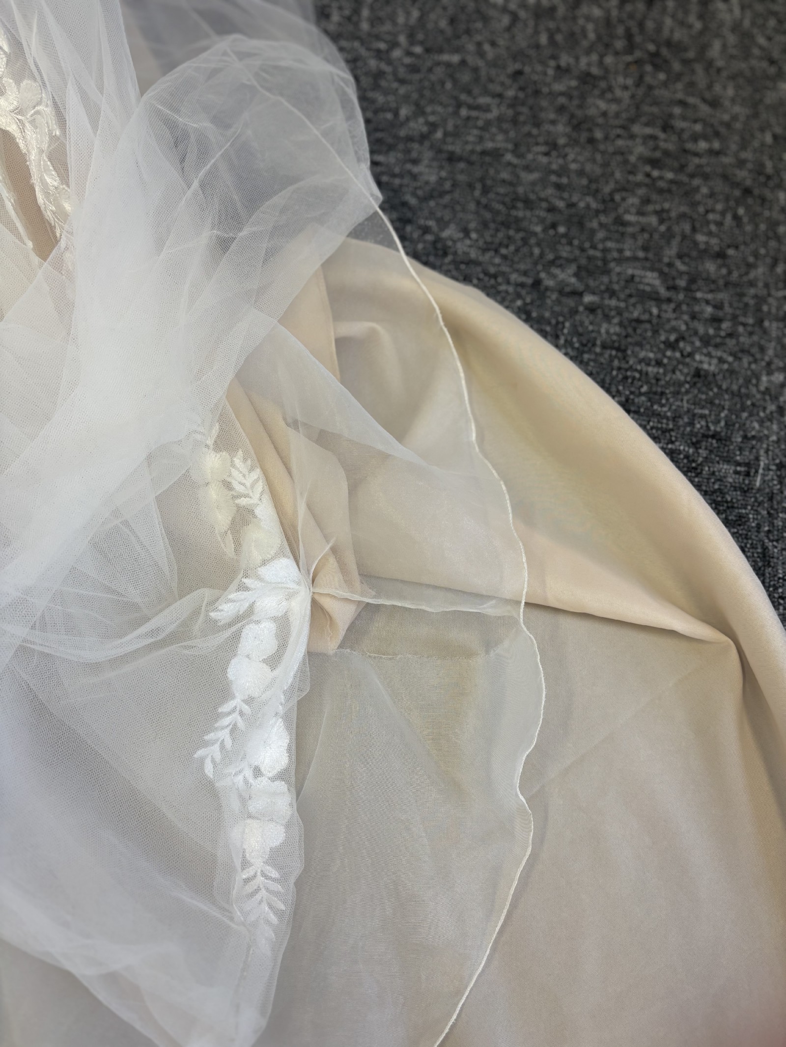‘Carlee’ by Justin Alexander. Ex sample, discontinued gown. Detachable straps damage to hem/ train- holes and rips worldwide postage available RRP £1675