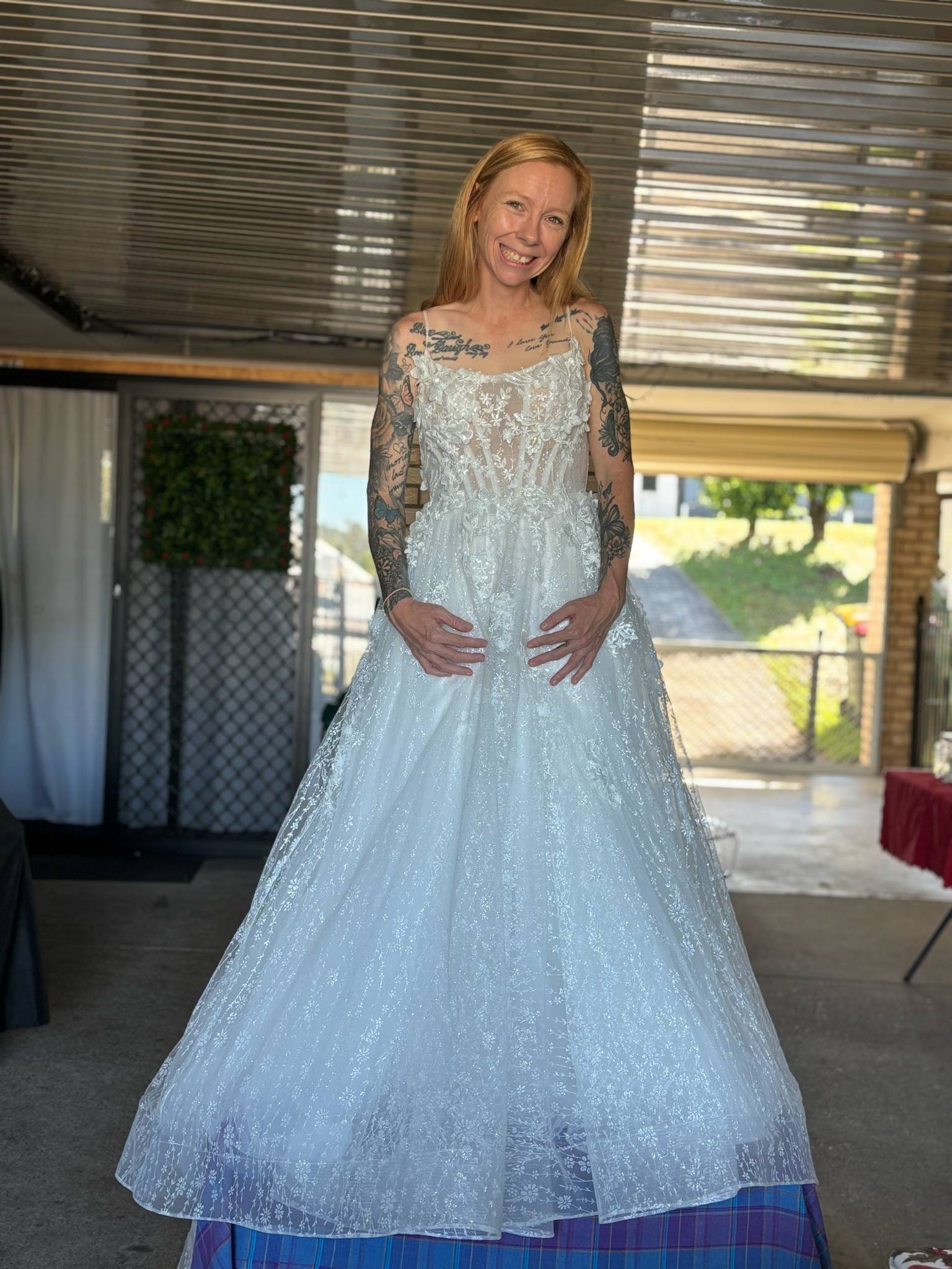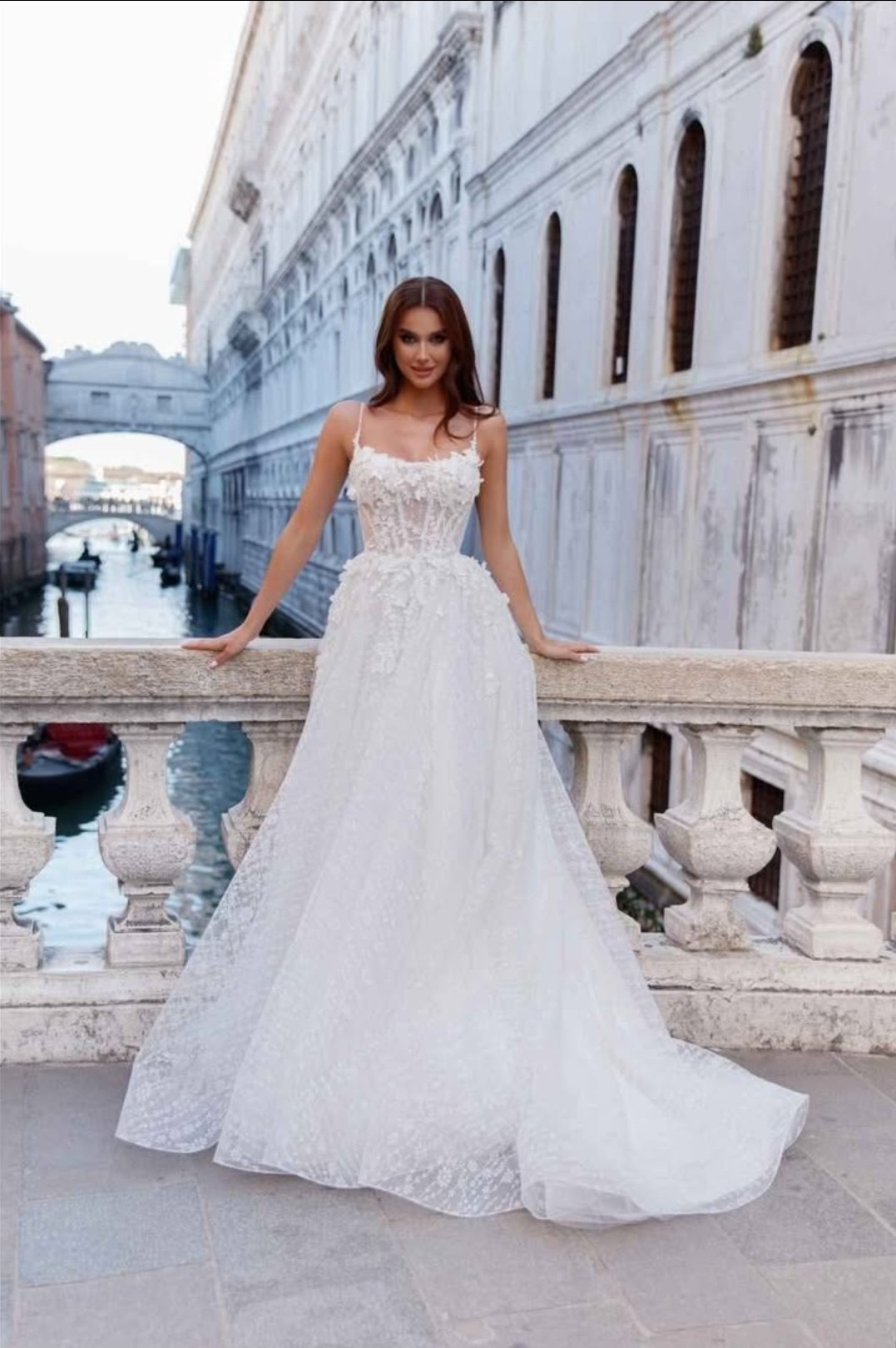 This stunning Oksana Mukha Neoball wedding dress has been a dream come true for me, and I am excited to pass it on to another bride who will cherish it just as much. The enchantingly delicate A-Line silhouette flatters every figure, while the square neckline adds an elegant touch without compromising comfort. The low back with spaghetti straps gives a hint of allure, ensuring you feel as gorgeous as you look on your special day.