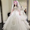 Adorned with intricate beading, sparkling crystals, and delicate pearls, every detail of this dress glimmers under the softest light, making you the center of attention on your special day. The floor-length design provides an aura of sophistication, as it billows gracefully with every step.