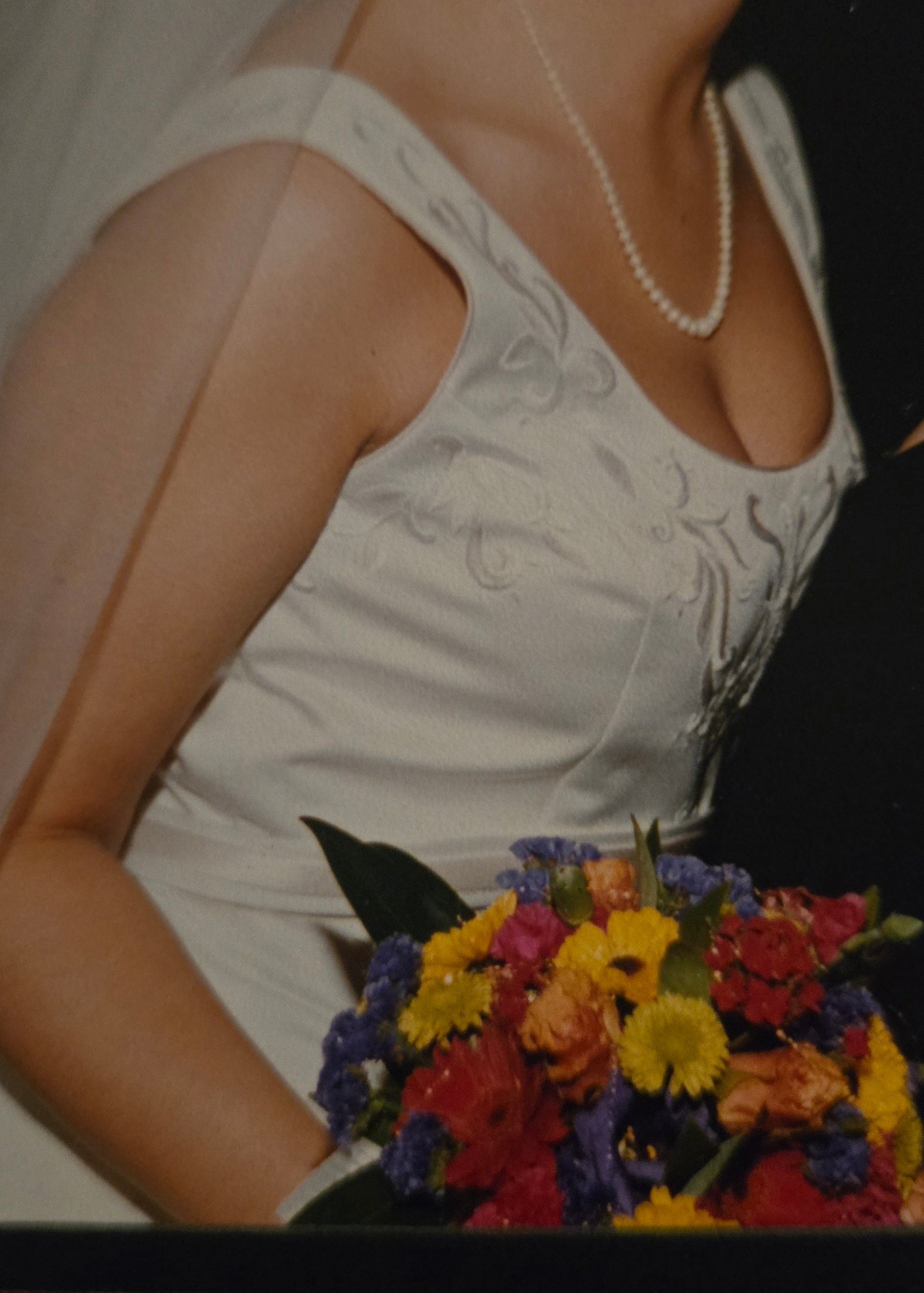 This timeless Ilissa gown by Demetrios is a beautifully preserved classic from 2000. The dress features a flattering V-neckline with a sculpted bodice and subtle embroidery, creating an elegant and refined look. It’s sleeveless, drawing attention to the neckline and upper body while remaining comfortable for all-day wear.