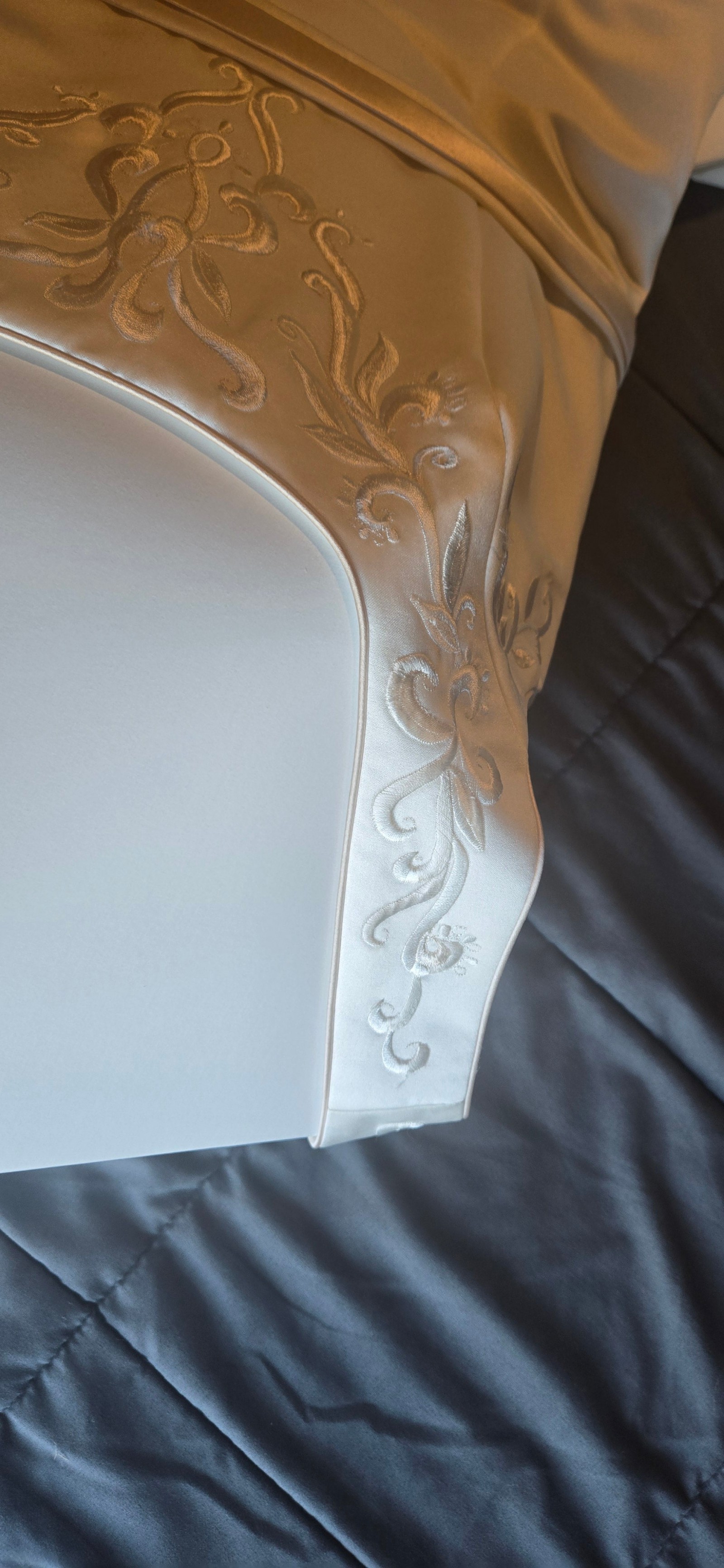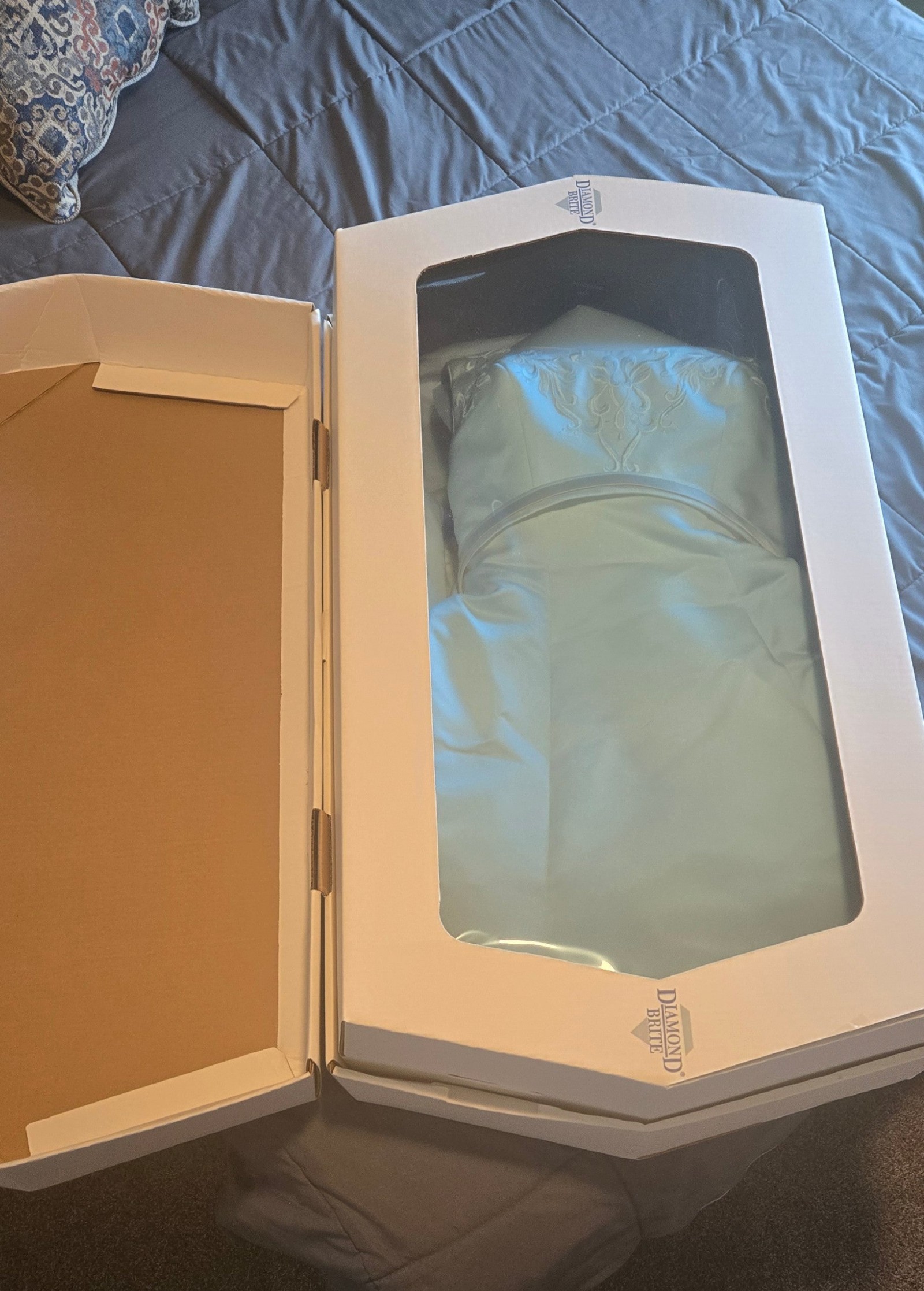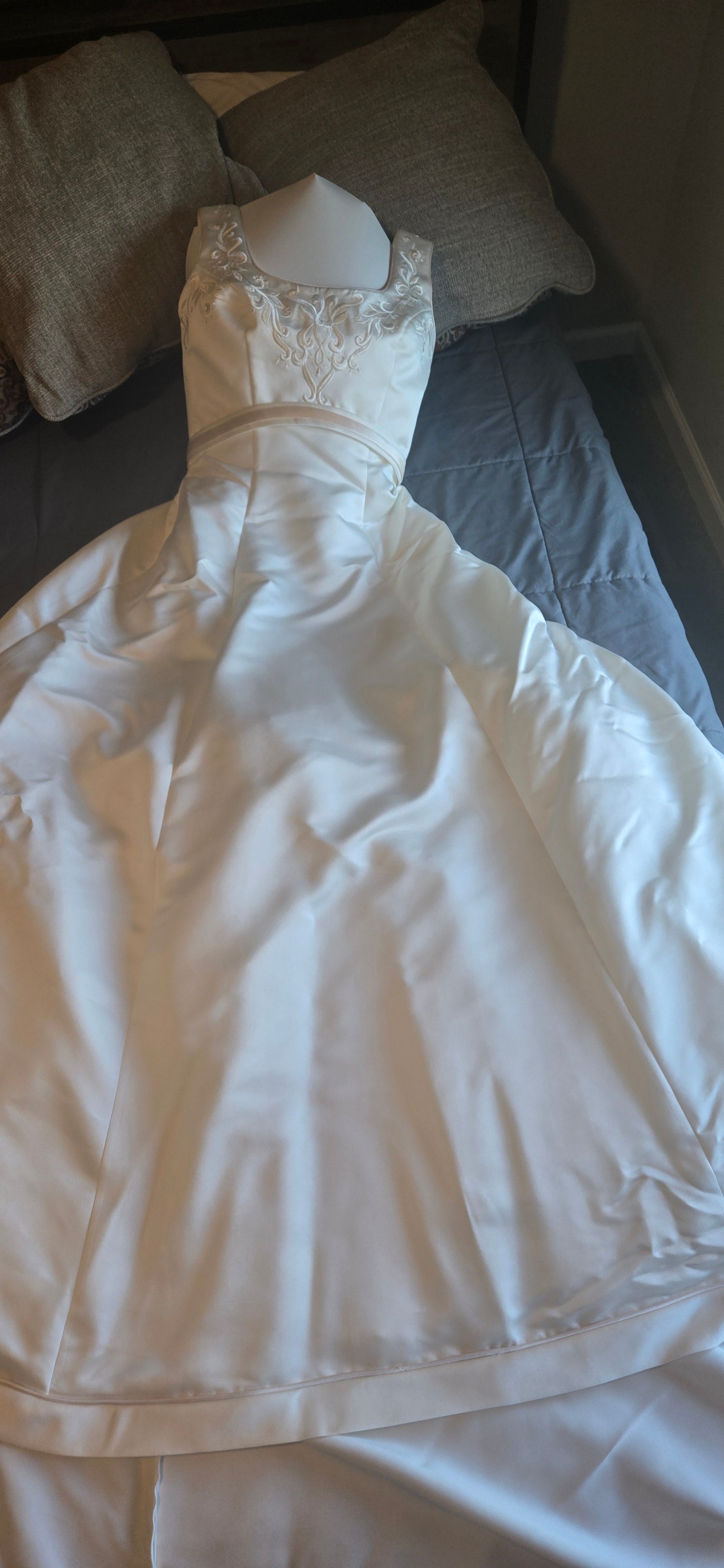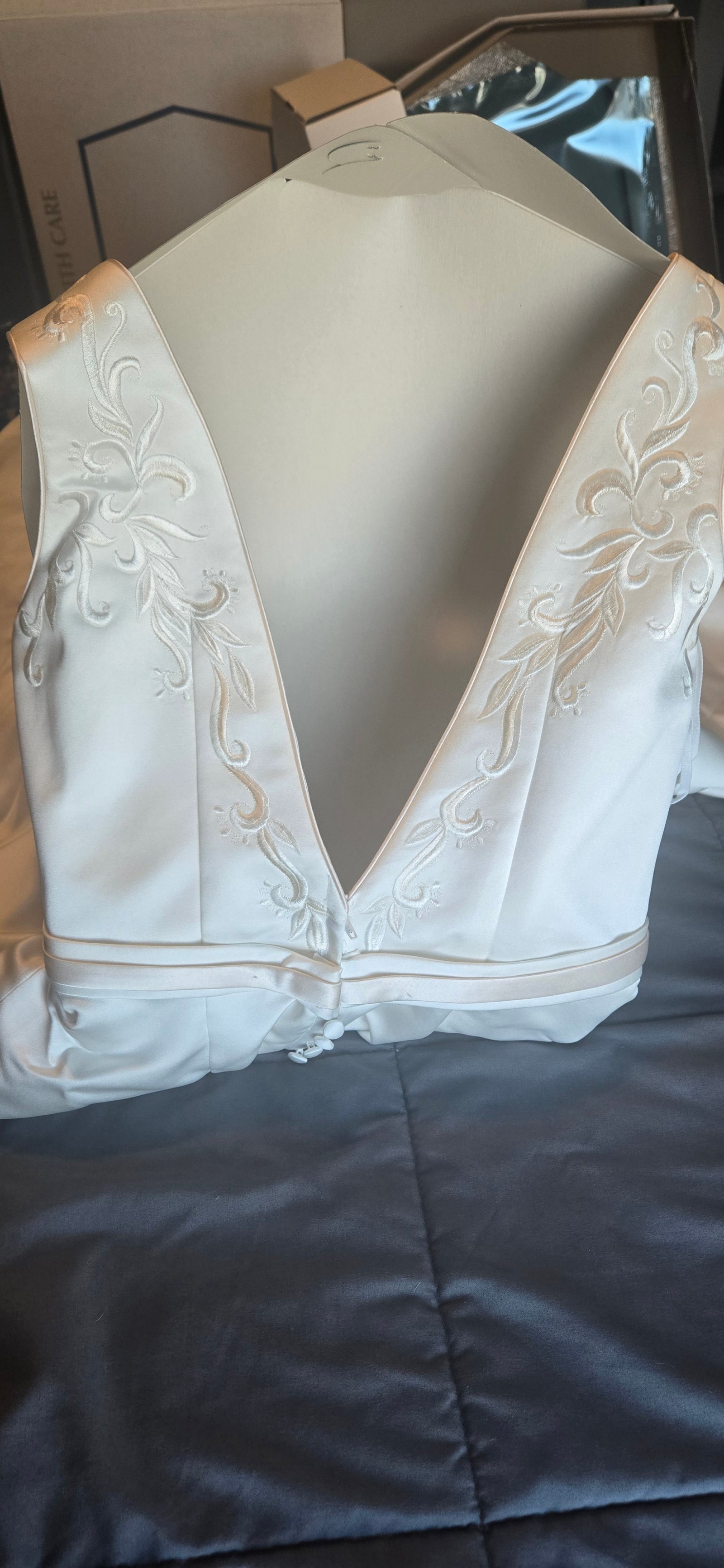 This gown has been professionally cleaned and preserved and remains in excellent condition, ready to be worn and loved again.