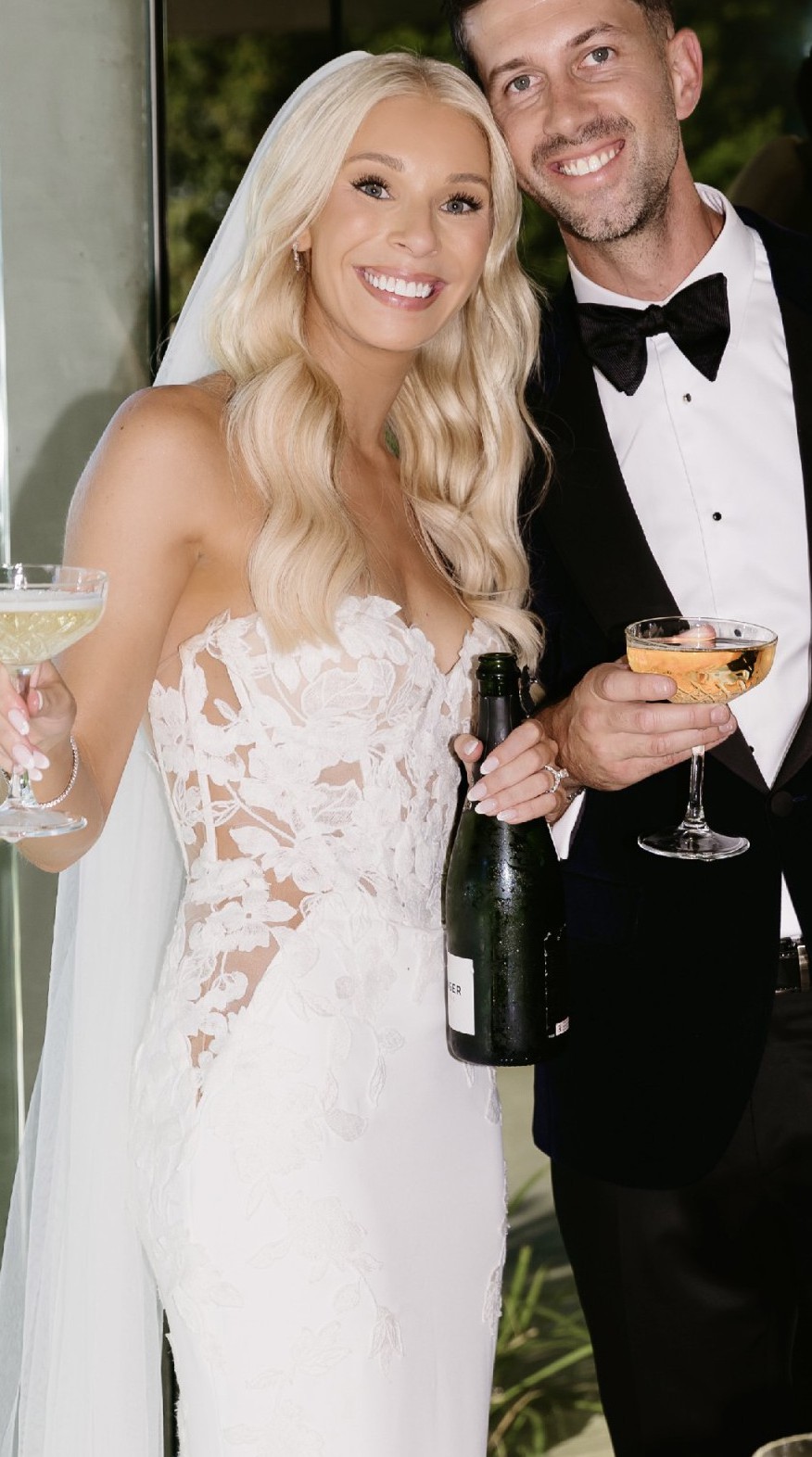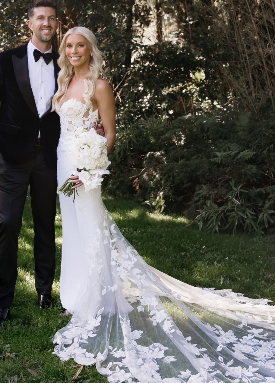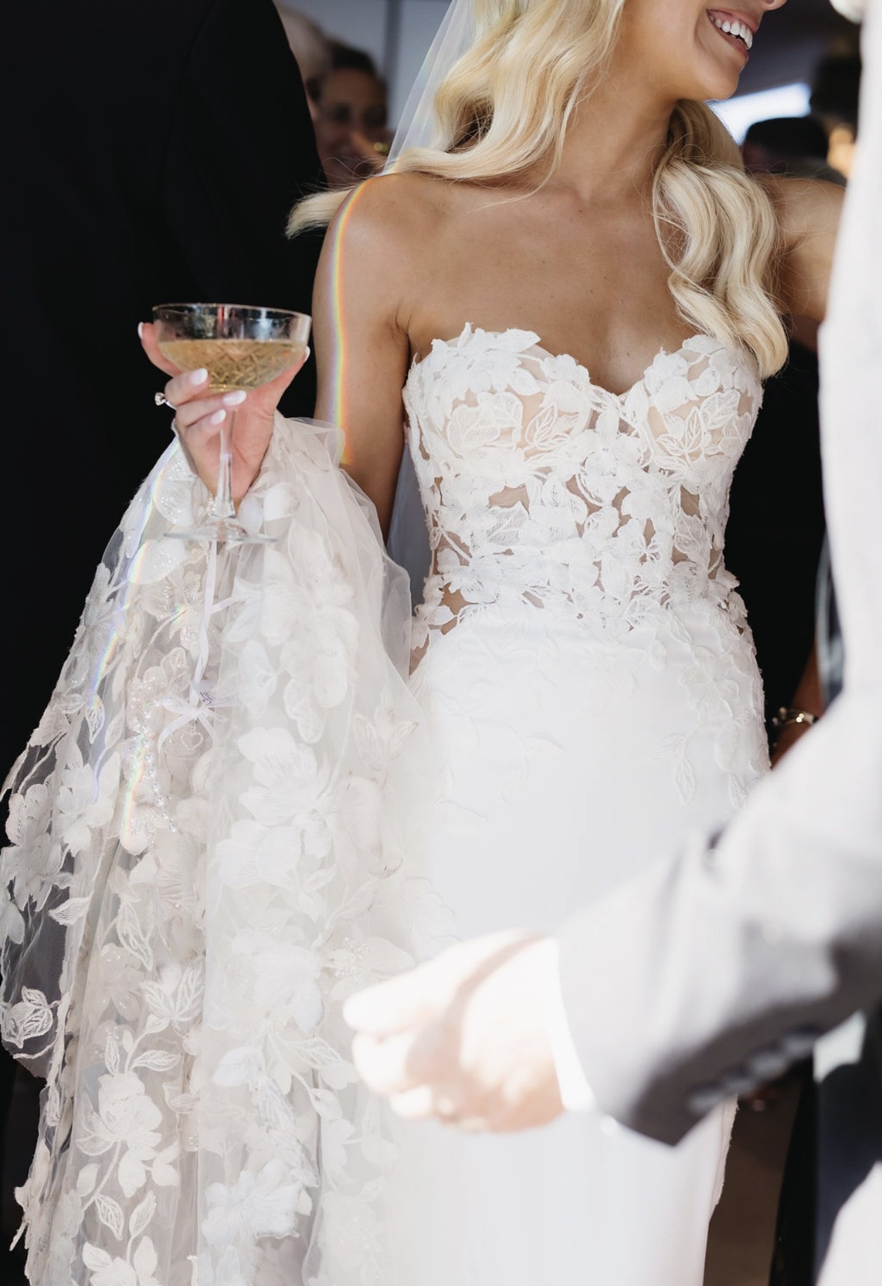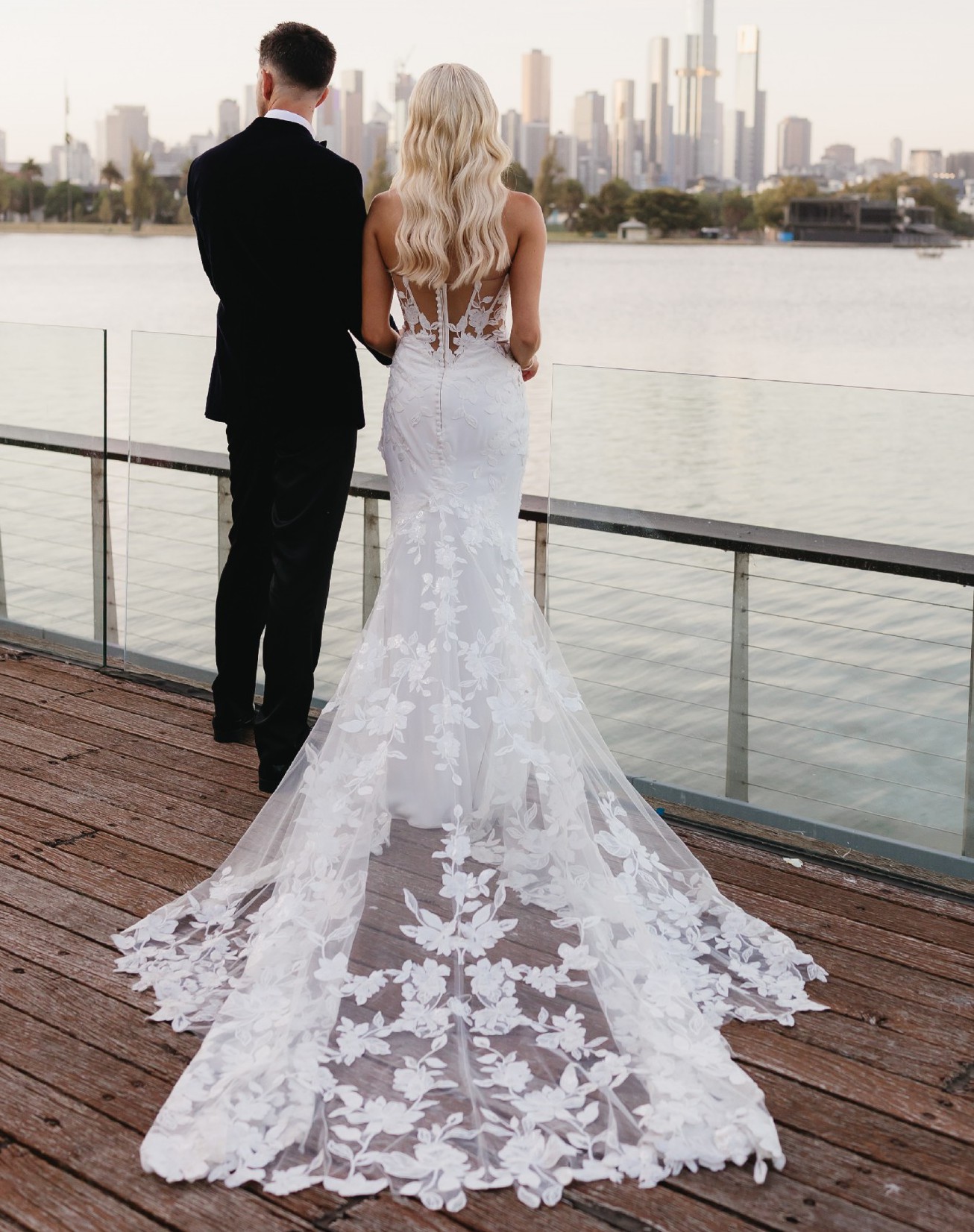 Enzoani Tamara style dress but note this dress as shown in the photos was professionally altered/re designed to suit my own design and dream by removing the sequins from the corset lace bodice (which were on the original design) to make the dress more of a classic lace look rather than “sparkly”and to shorten the train of the dress to a classic circle rather than the original style (as shown if you search Tamara Enzoani online).