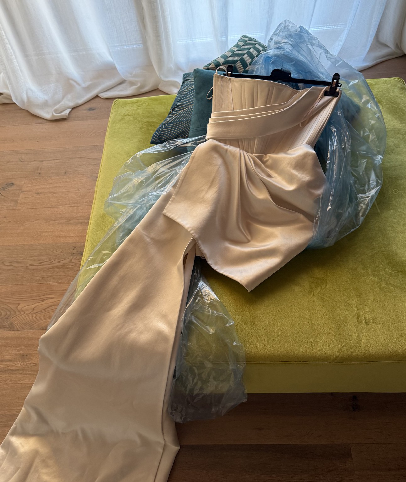 Abito indossato 2 ore come secondo abito per il mio matrimonio taglia Xs/s colore bianco taglio aderente in seta . E' come nuovo . Pagato 6000€ su net a porter.