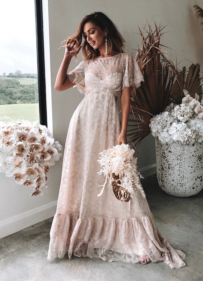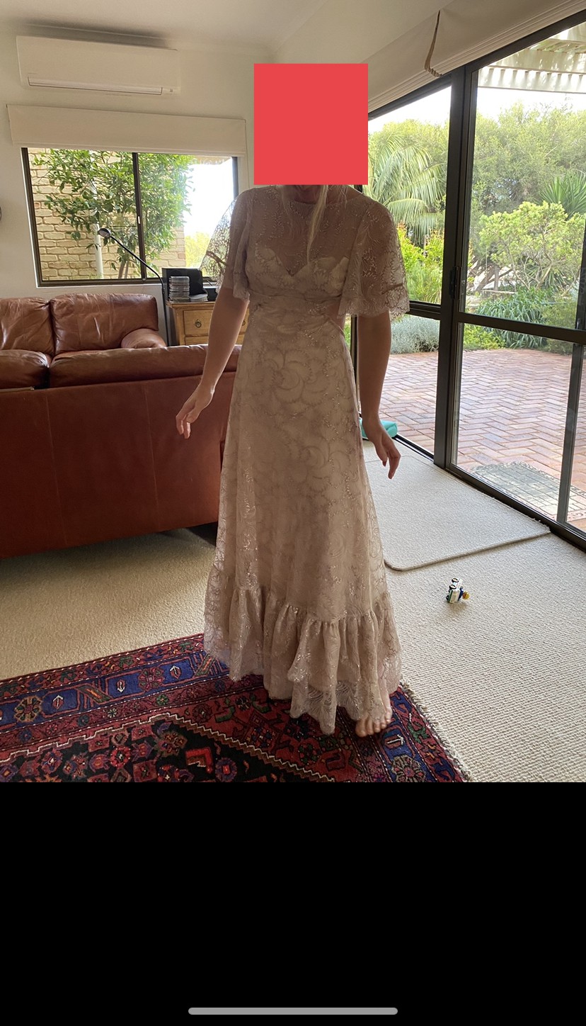 Stunning Grace Loves Lace Capri gown. 'Rose hued metallic lace'. Feels so beautiful to wear. Vintage feel but with the open back. Drapes perfectly. Beautiful wedding dress but I have also worn it to a black tie event. Can provide further details with measurements. Make me an offer!