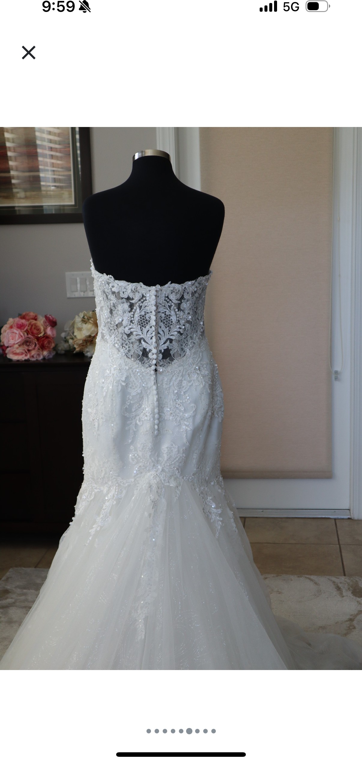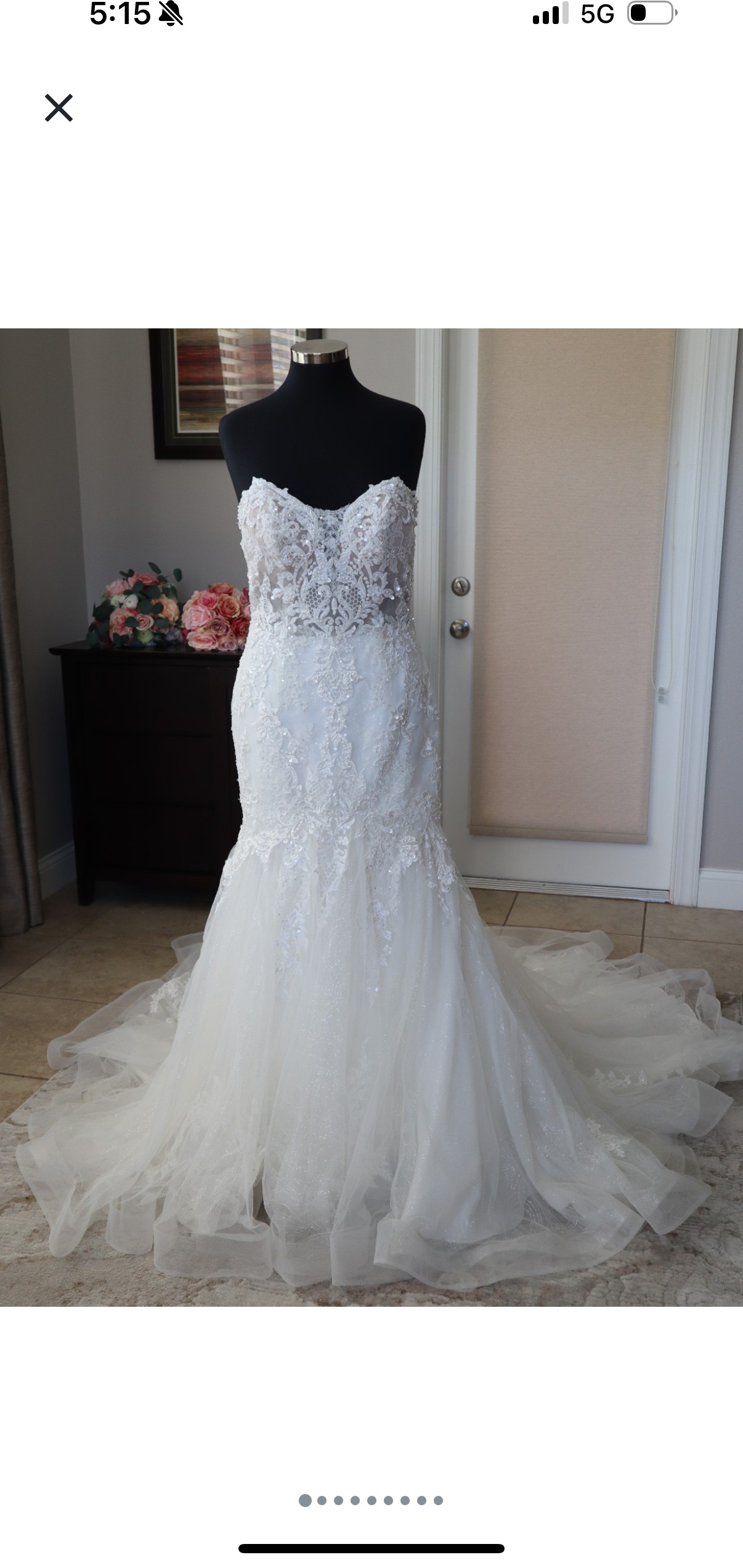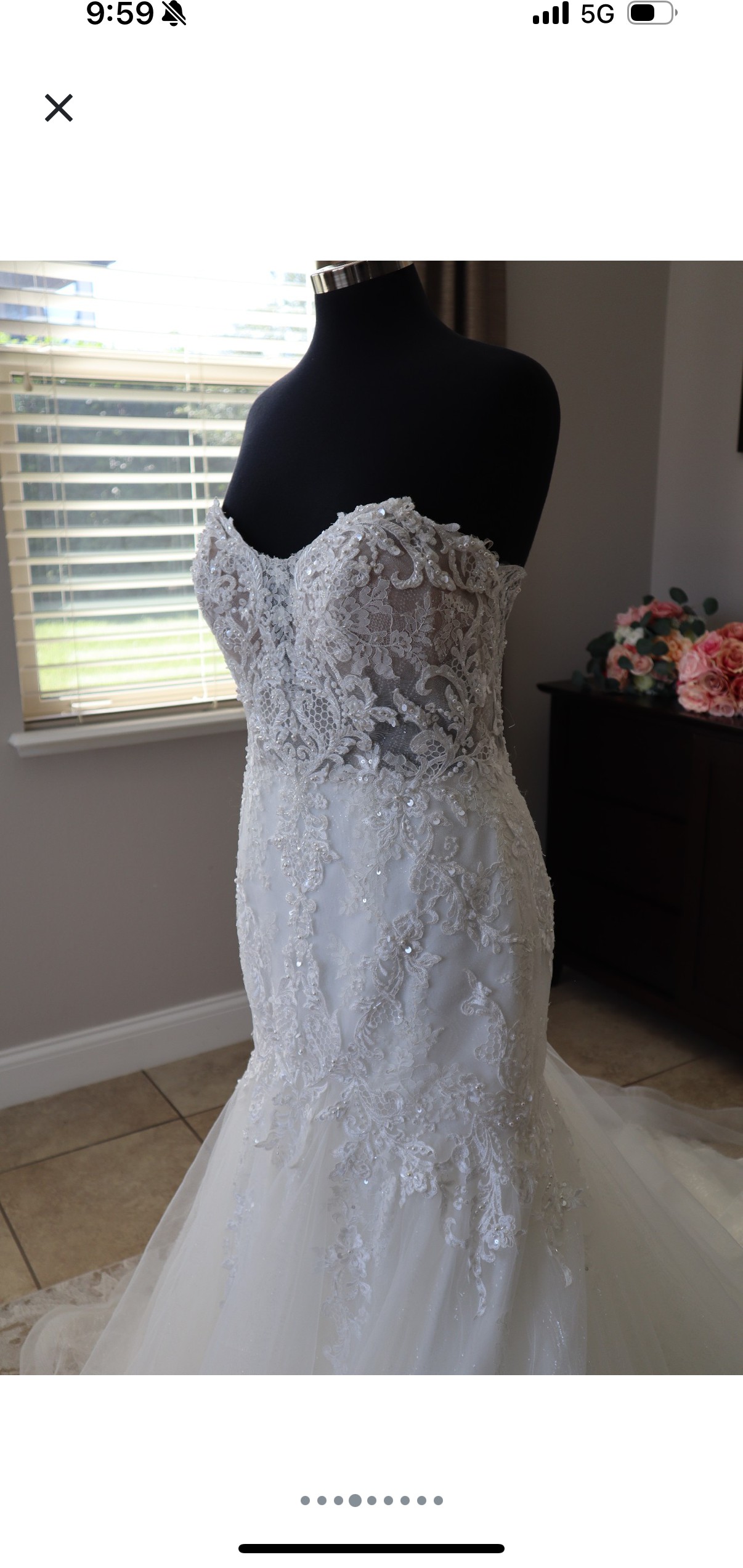 A gorgeous mermaid wedding dress with a sheer bodice with the illusion covering. Purchased As a sample.... looking to recoup what I spent...