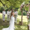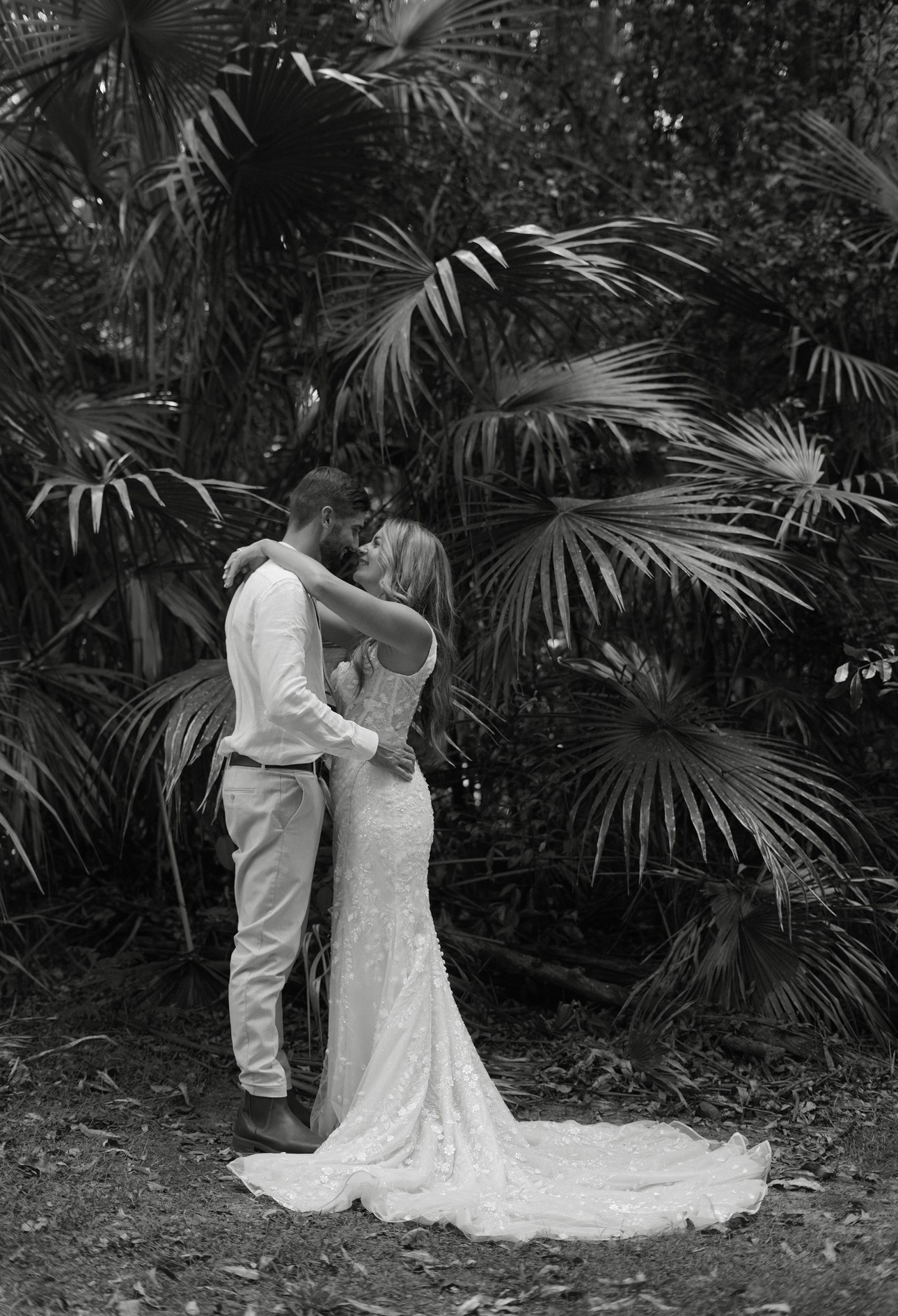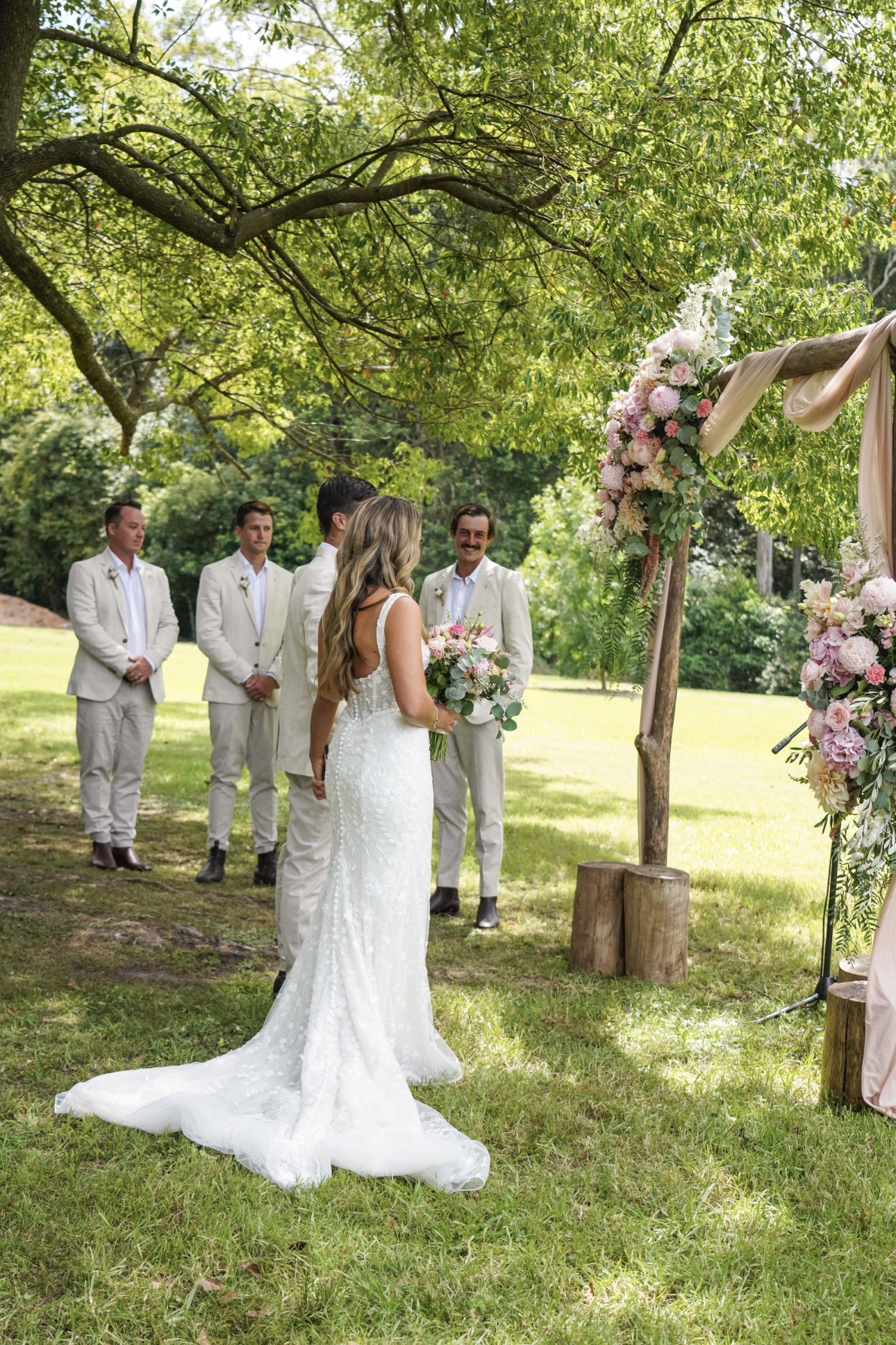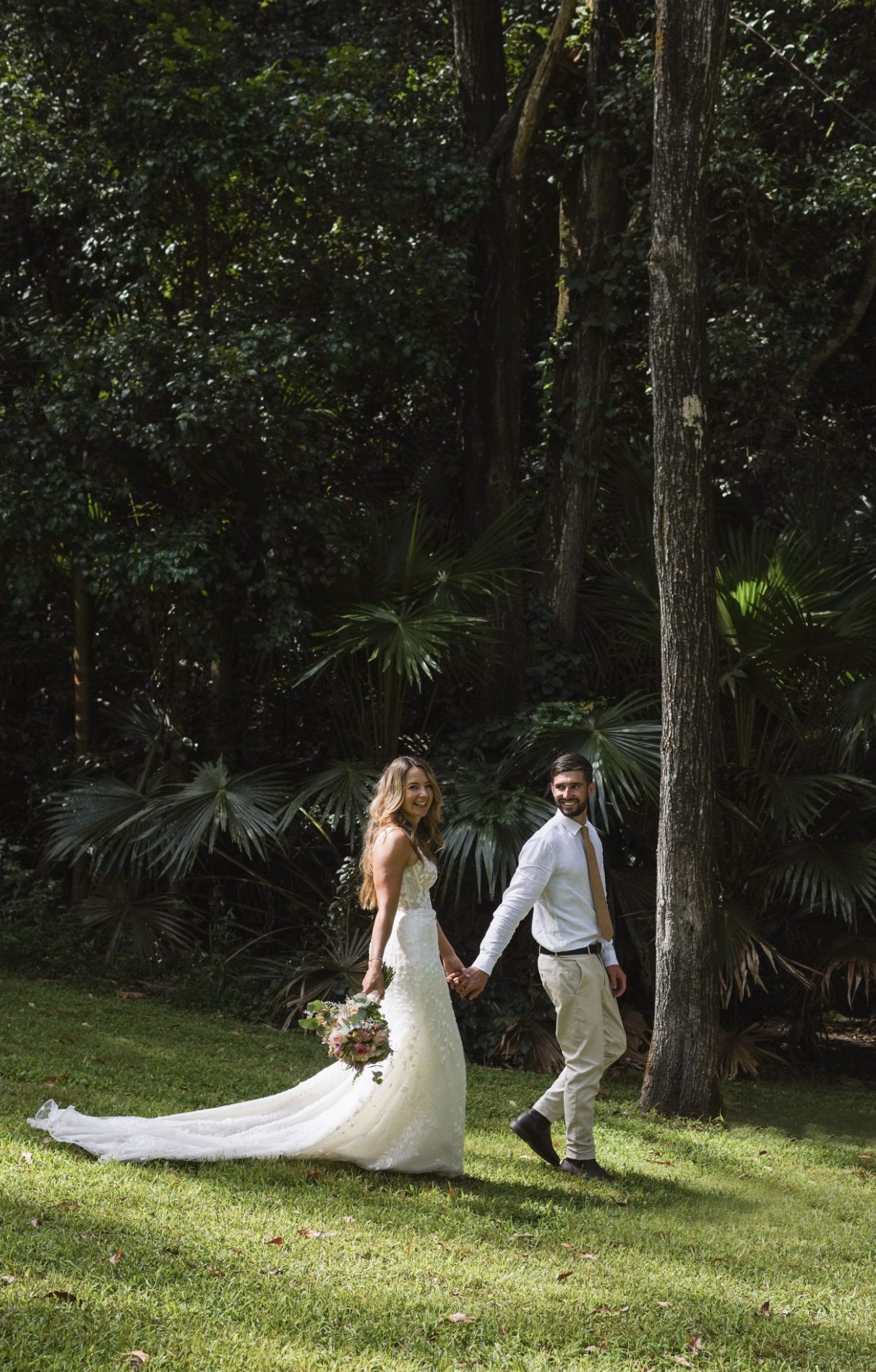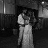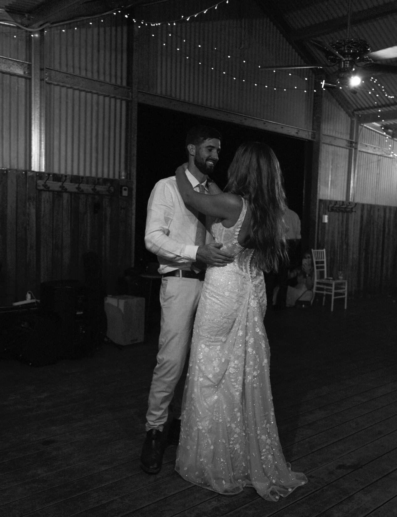 The square neck line is so flattering. The top layer has intricate floral lace and beading over a 2nd glitter layer that makes the whole dress sparkle. It zips up the back with buttons the entire length of the dress that hide the zip. The bodice has skin coloured bra cups and is semi sheer showing exposed boning for a modern look. The train is the best part and can be bustled up for ease of walking and dancing (see dancing pic.) I wish I could keep it but it will make me so happy to see another bride look incredible in this dress.