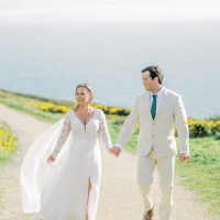 This is an unaltered Stella York A-Line wedding dress. It’s high-low, with pockets and a high slit down the left leg. There are numerous non-functional buttons down the back. The dress closes with a zipper. This gown is a size 10, the bride typically wears a size 4-6 dress. I would classify this dress as medium-weight. It’s not overly heavy, but isn’t light and flowy. It does have a slip.